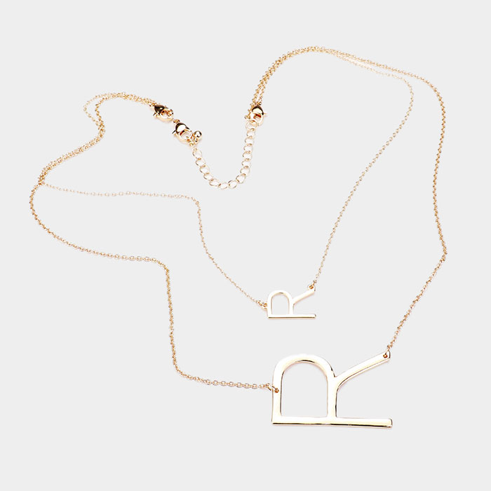 -N- Initial Monogram 2Row Strand Double Detachable Chain Necklace