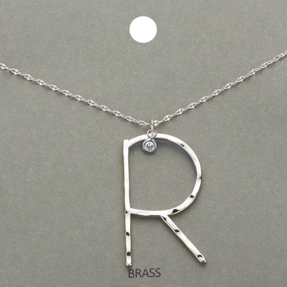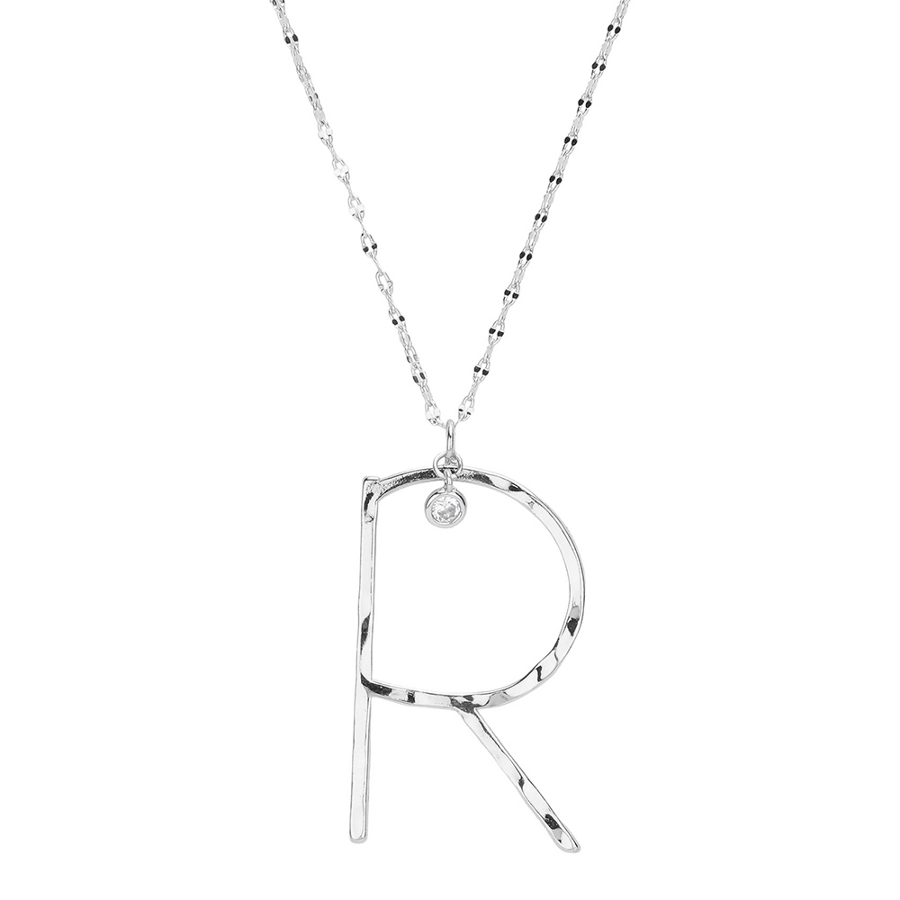 -R- CZ Stone Paved Initial Monogram Pendant Necklace