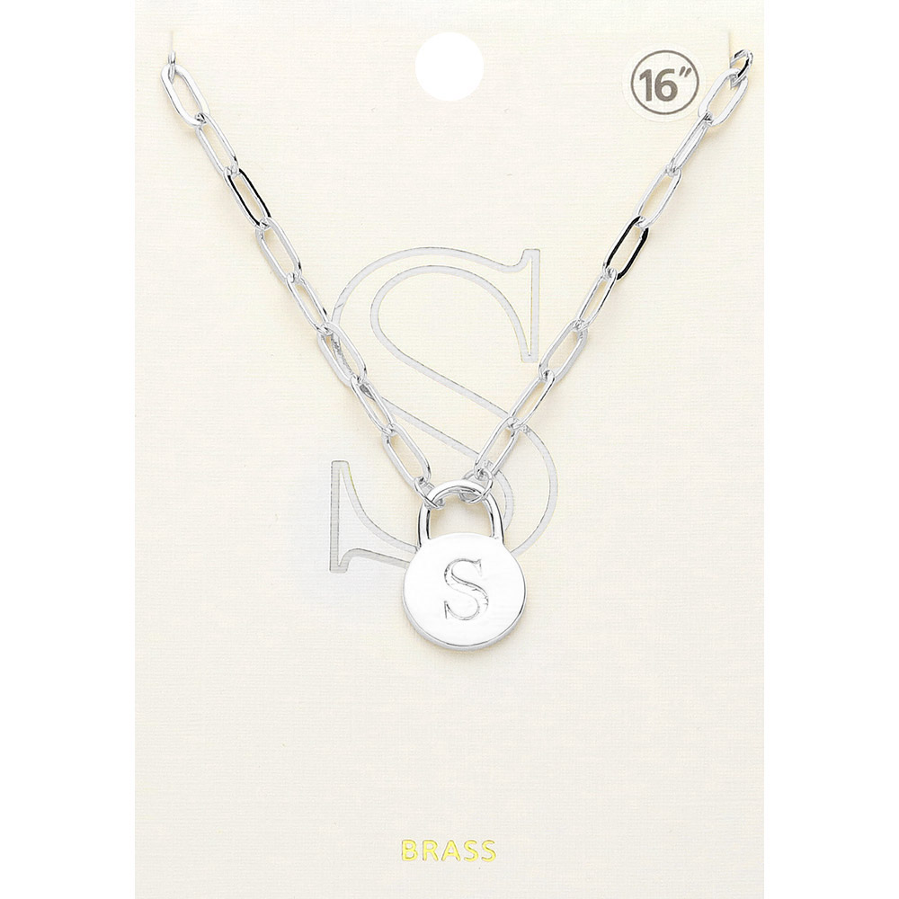 -W- Brass Metal Initial Monogram Lock Pendant Necklace