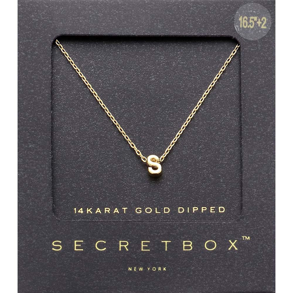 -S- Secret Box _ 14K Gold Dipped Initial Monogram Pendant Necklace
