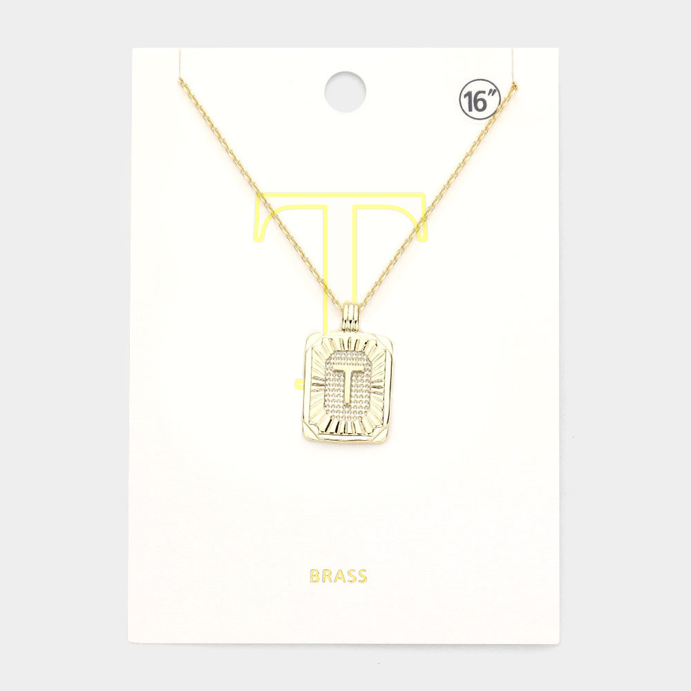 -X- Brass Metal Rectangle Initial Monogram Pendant Necklace