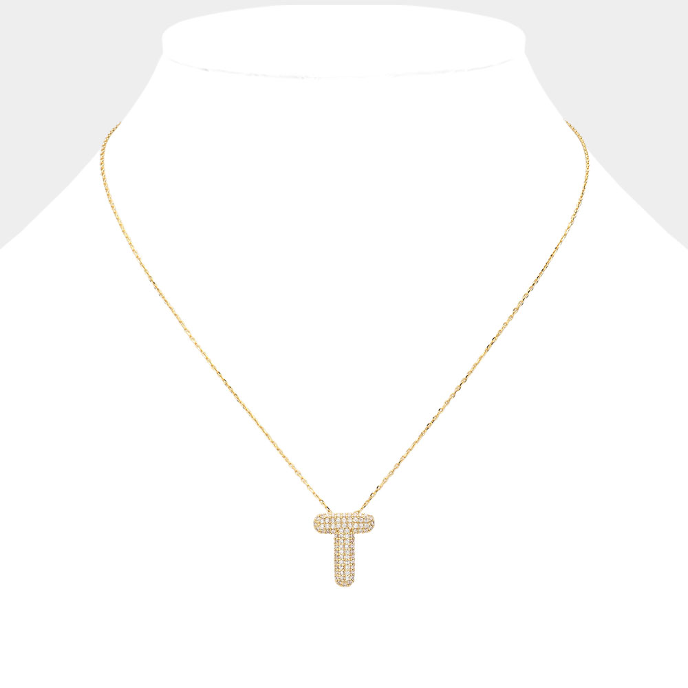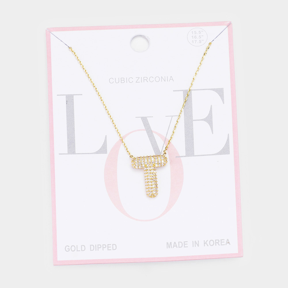 Details • Necklace Size : 15.5" + 2" L • Pendant Size : 0.6" X 0.65" • Letter T • Lead and Nickel Compliant • Made In Korea • Gold Dipped • CZ Cubic Zirconia