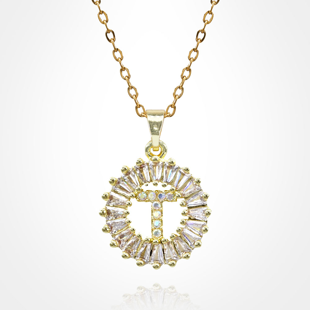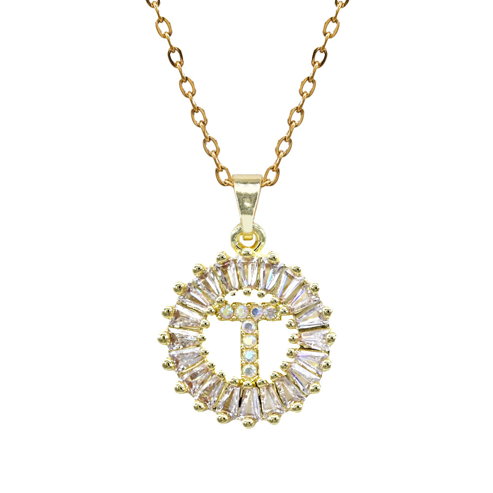-T- Stainless Steel CZ Stone Embellished Round Initial Monogram Pendant Necklace -T- Stainless Steel CZ Stone Embellished Round Initial Monogram Pendant Necklace -T- Stainless Steel CZ Stone Embellished Round Initial Monogram Pendant Necklace