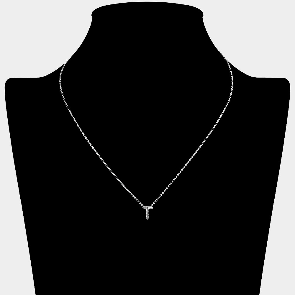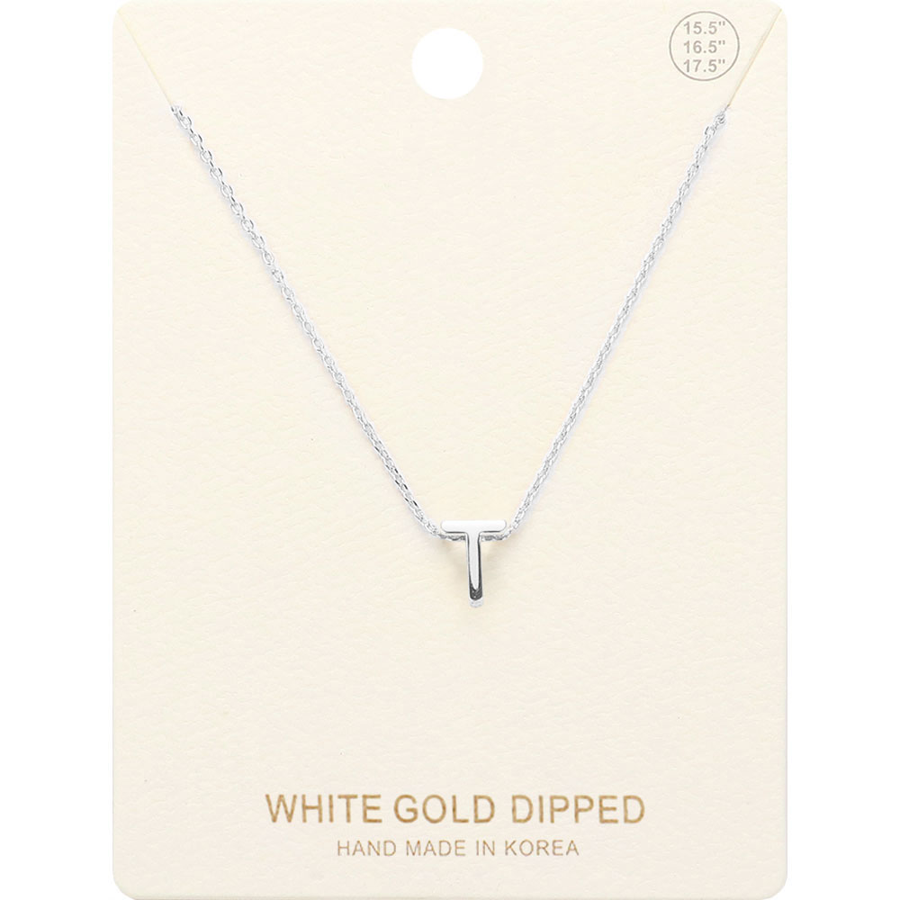 -T- White Gold Dipped Initial Monogram Metal Pendant Necklace