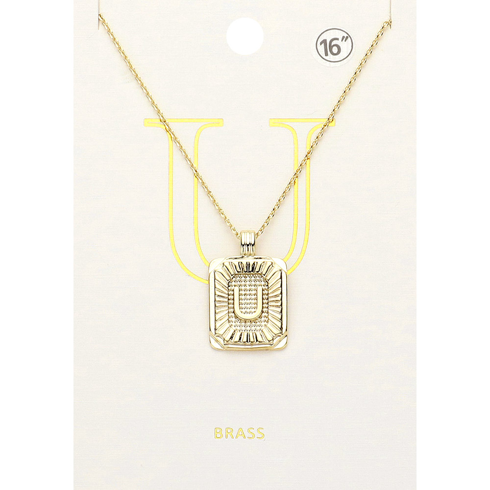 -N- Brass Metal Rectangle Initial Monogram Pendant Necklace