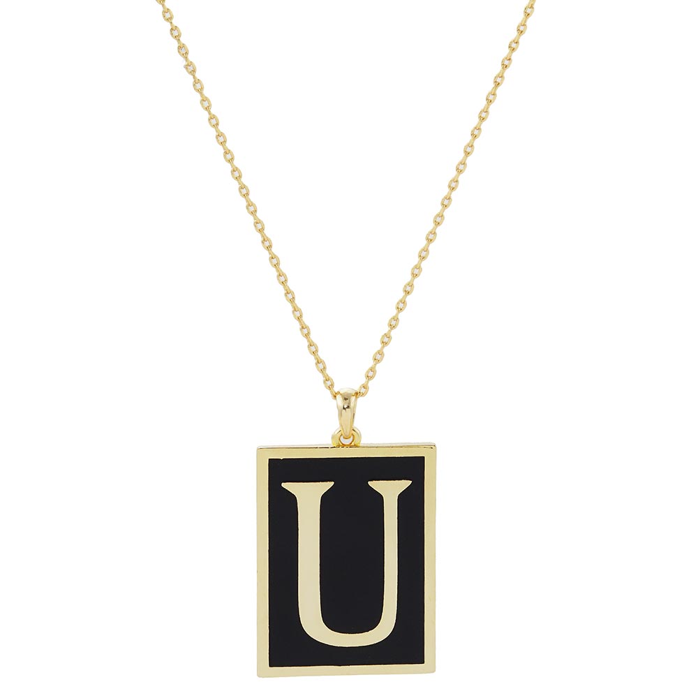 -U- Initial Monogram Brass Metal Pendant Necklace