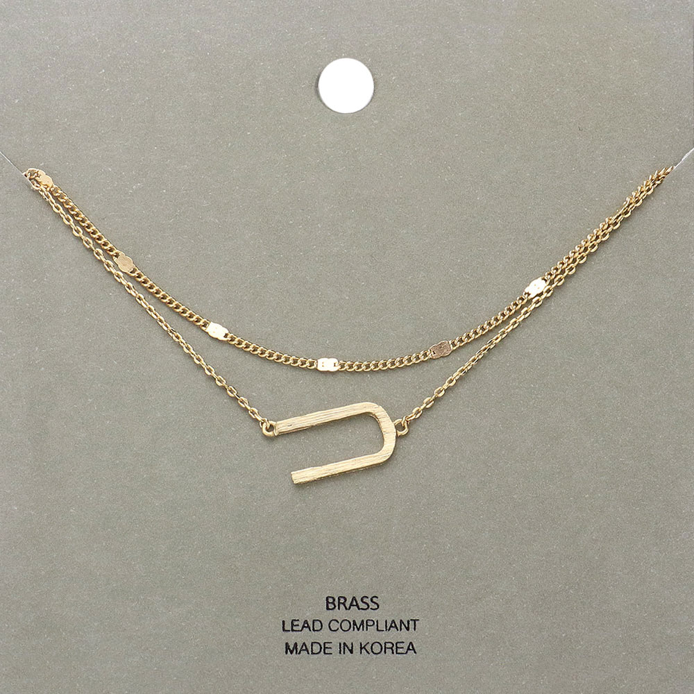 -I- Brass Metal Rectangle Initial Monogram Pendant Necklace