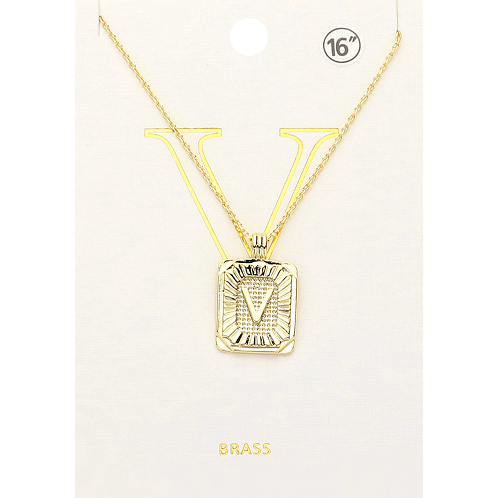 -Y- Brass Metal Rectangle Initial Monogram Pendant Necklace