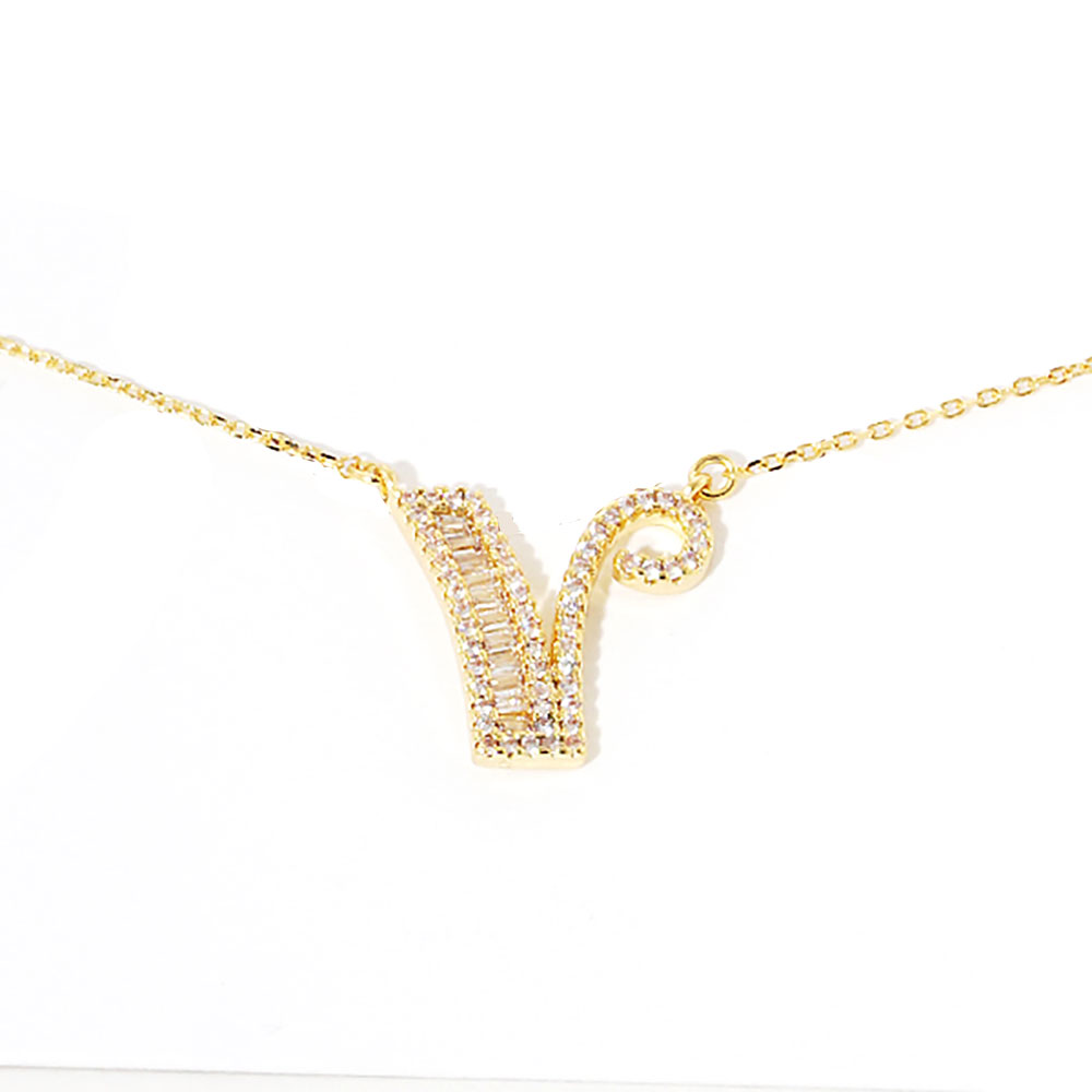 -Y- CZ Initial Monogram Pendant Necklace