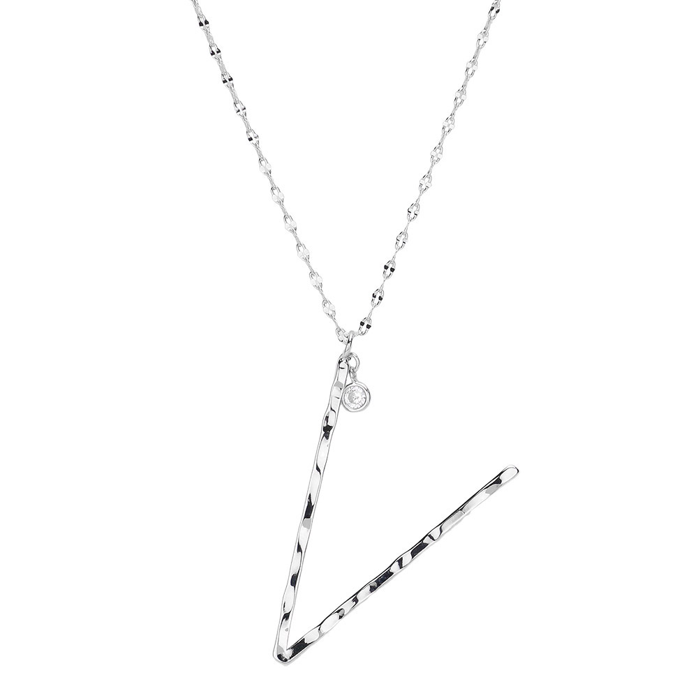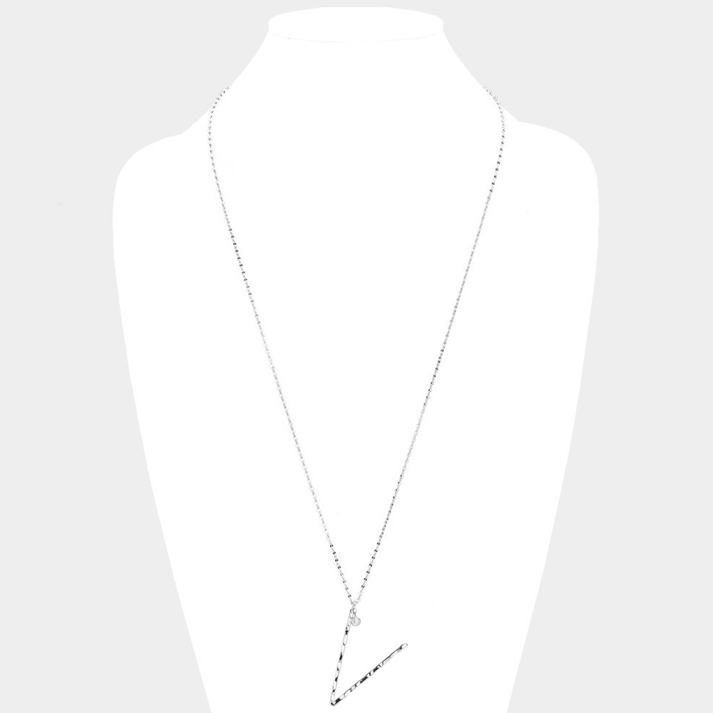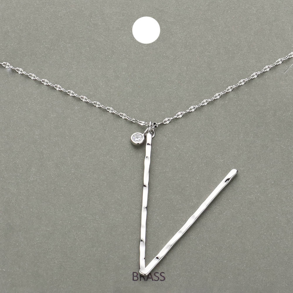 -V- Rhinestone Initial Monogram Pendant Brass Chain Necklace