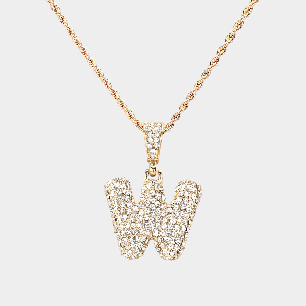 -W- Secret Box _ 14K Gold Dipped CZ Initial Monogram Pendant Necklace
