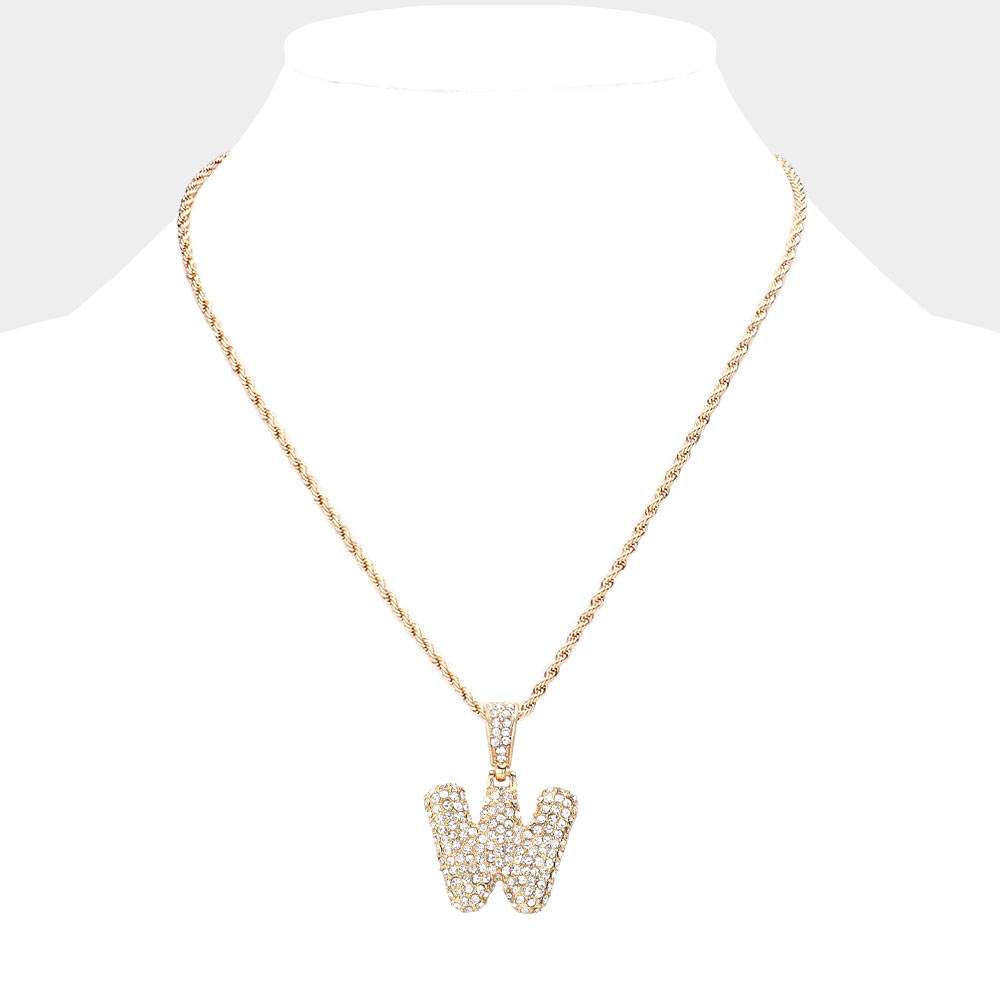 -W- Initial Monogram Brass Metal Pendant Necklace