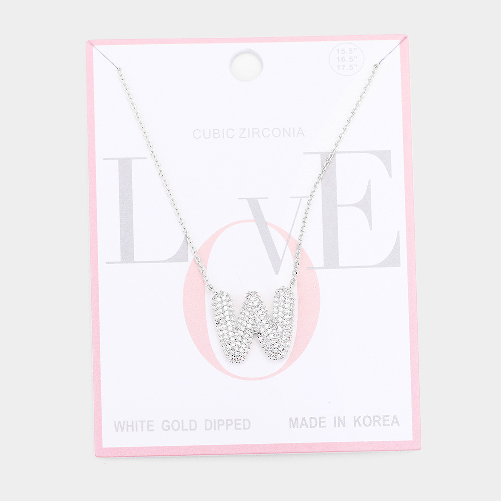 Details • Necklace Size : 15.5" + 2" L • Pendant Size : 0.7" X 0.65" • Letter W • Lead and Nickel Compliant • Made In Korea • Gold Dipped • CZ Cubic Zirconia