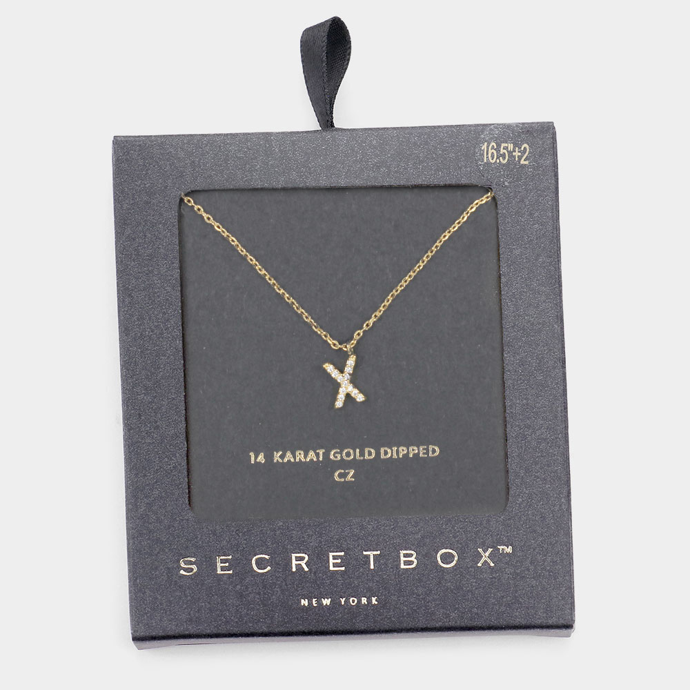 -Z- Secret Box _ 14K Gold Dipped CZ Initial Monogram Pendant Necklace