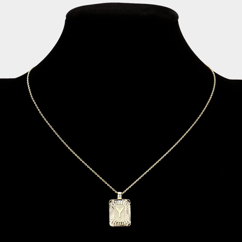 -V- Brass Metal Rectangle Initial Monogram Pendant Necklace