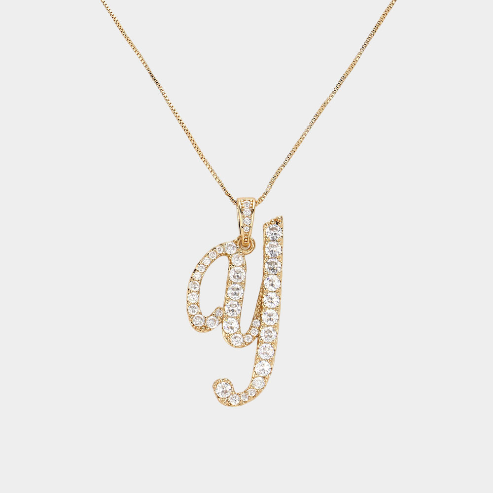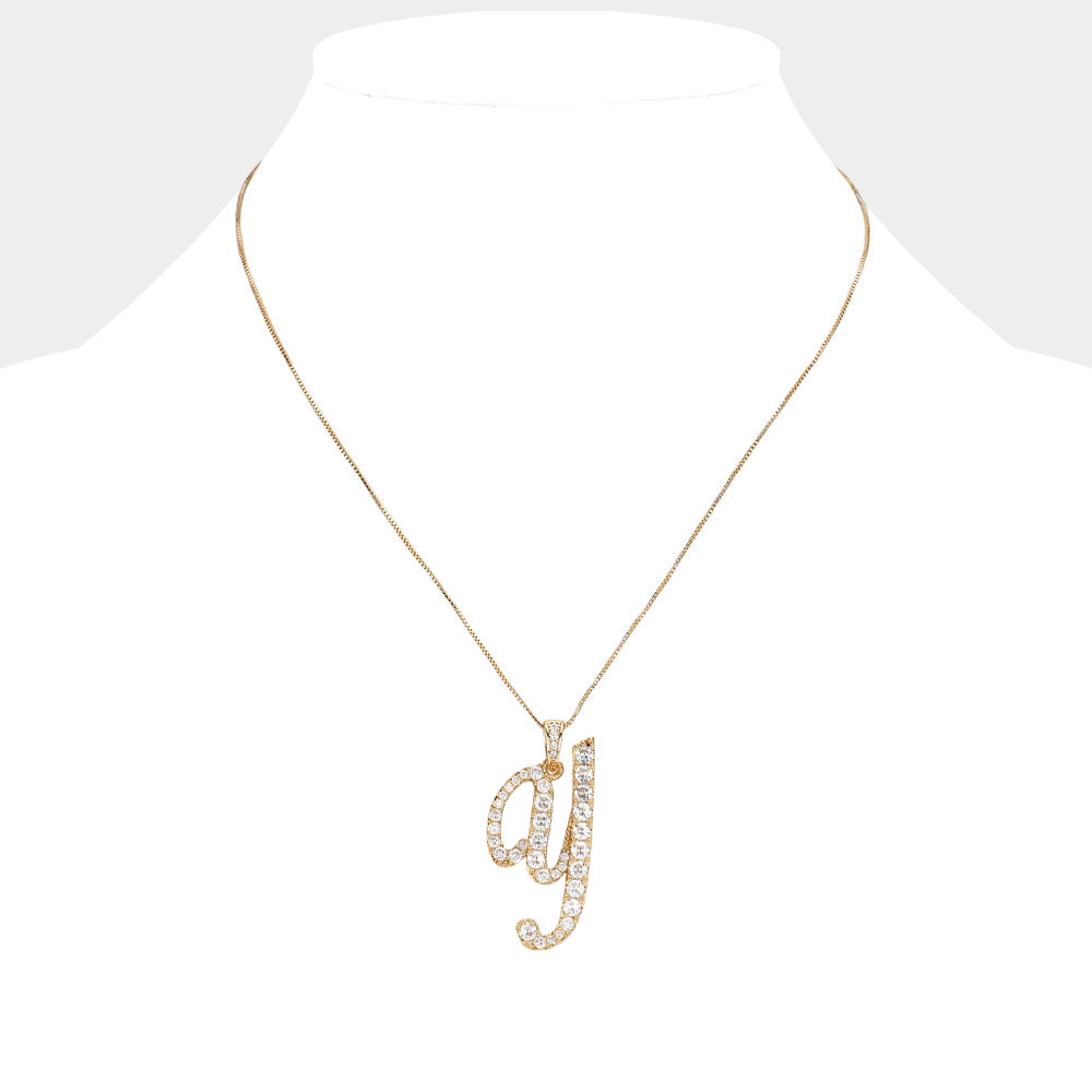 H Brass Metal Cubic Zirconia Initial Monogram Pendant Necklace