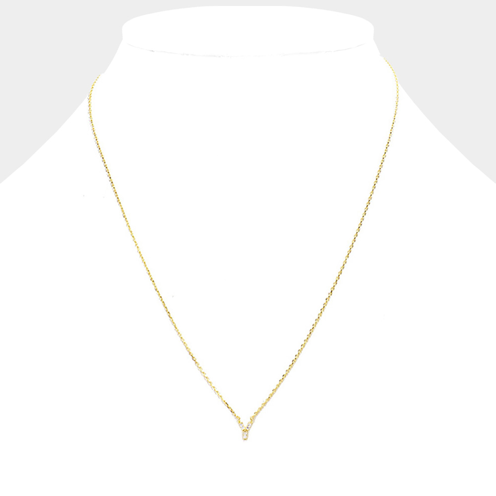 -Y- Secret Box _ 14K Gold Dipped CZ Initial Monogram Pendant Necklace