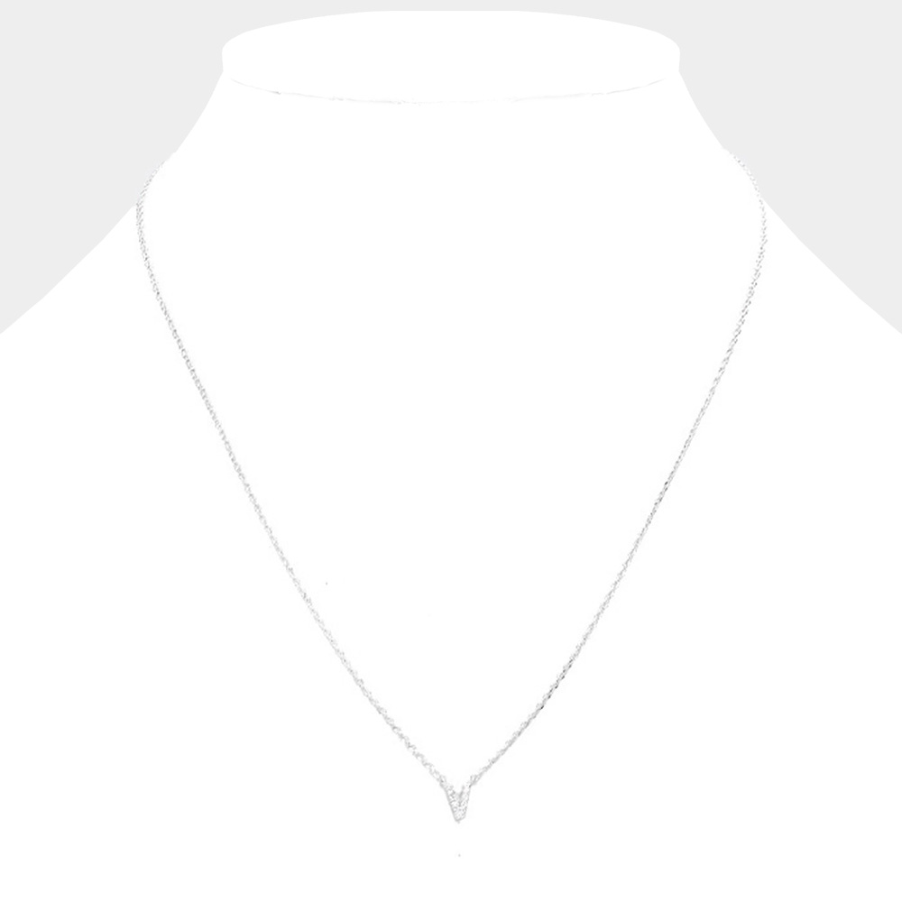 -Y- Rhinestone Initial Monogram Pendant Brass Chain Necklace