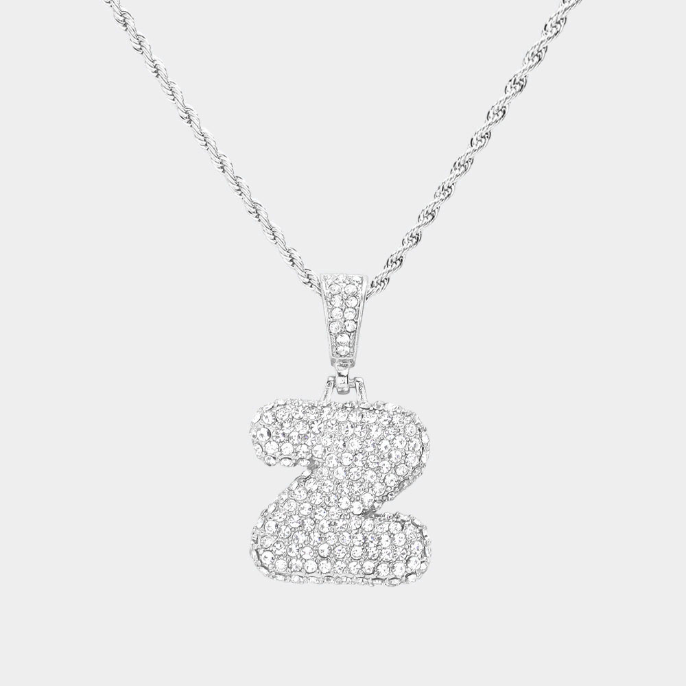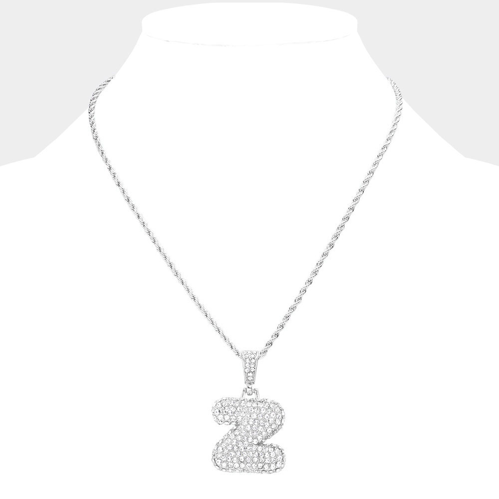 -Z- Rhinestone Initial Monogram Pendant Brass Chain Necklace