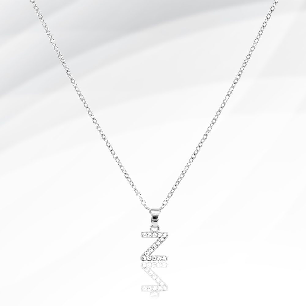 -Z- Stainless Steel CZ Stone Paved Initial Monogram Pendant Necklace