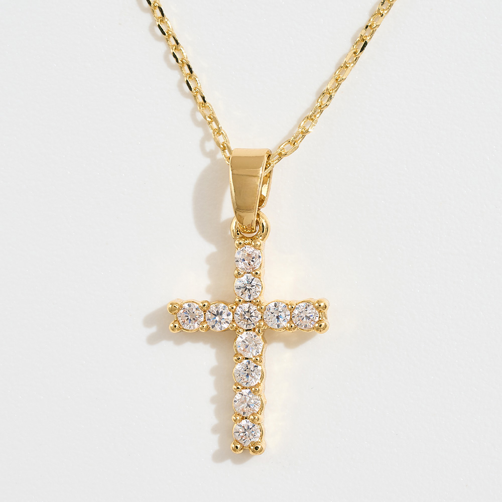 • This radiant cross pendant necklace features a classic design adorned with sparkling stones that capture light from every angle. A timeless symbol of faith and devotion, it makes a meaningful accessory for everyday wear or a heartfelt gift for special occasions.