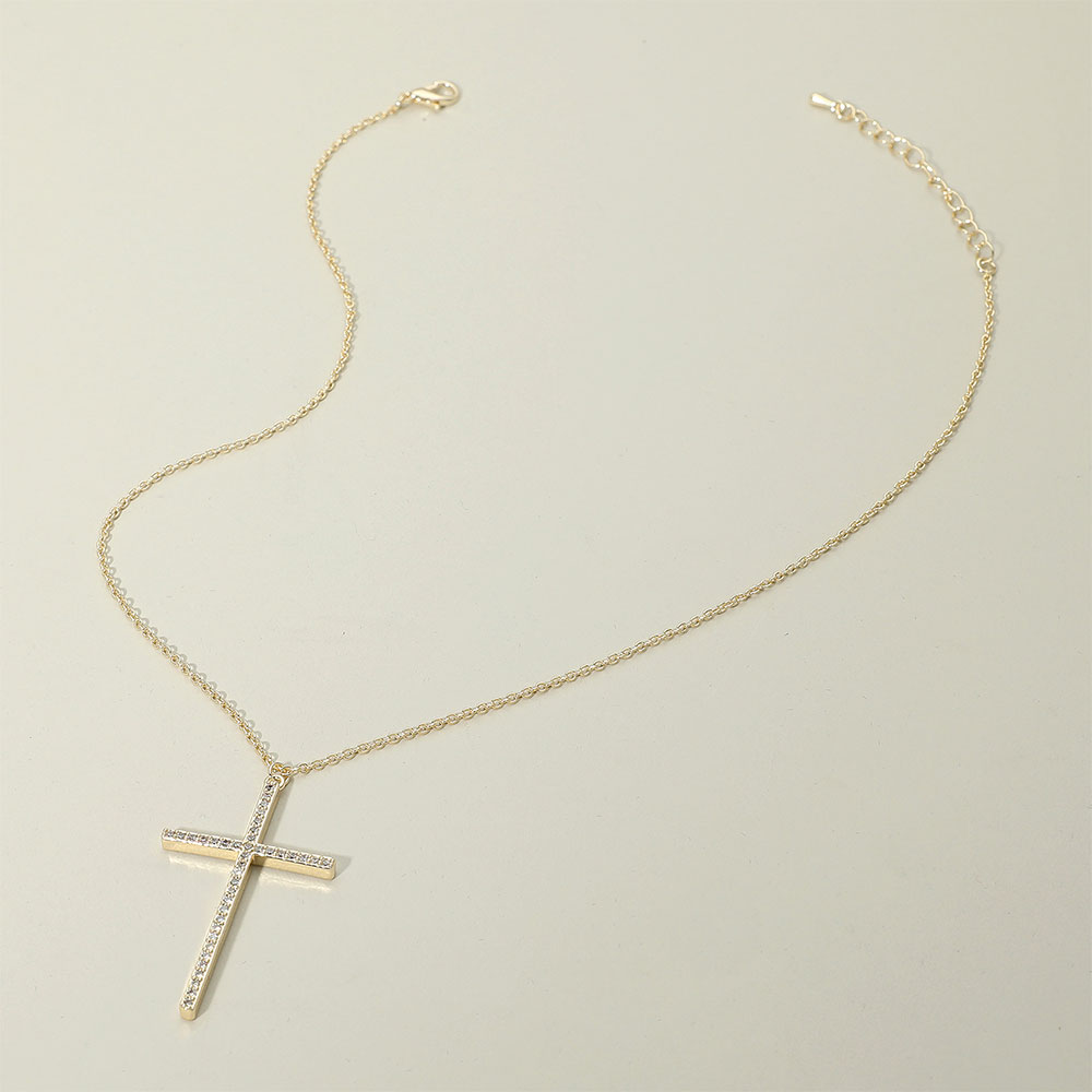 Details • Necklace Size : 16" + 2" L • Pendant Size : 1.2" X 2" • Elegant cross pendant necklace designed with shimmering accents on a delicate chain. A timeless piece that adds meaning and sophistication, perfect for layering or wearing alone for both casual and formal occasions. • CZ Cubic Zirconia • Gold Dipped