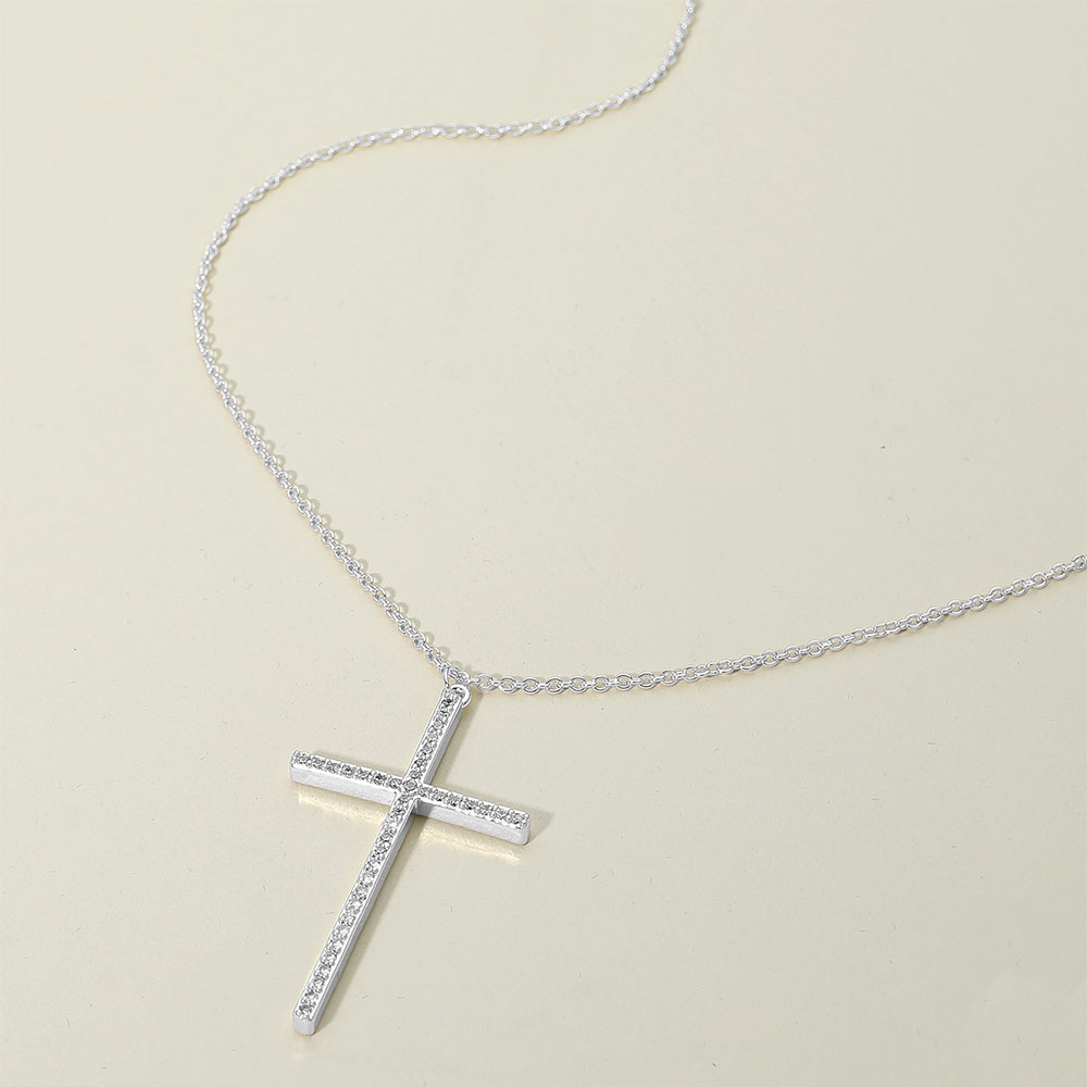 Details • Necklace Size : 16" + 2" L • Pendant Size : 1.2" X 2" • Elegant cross pendant necklace designed with shimmering accents on a delicate chain. A timeless piece that adds meaning and sophistication, perfect for layering or wearing alone for both casual and formal occasions. • CZ Cubic Zirconia • Gold Dipped
