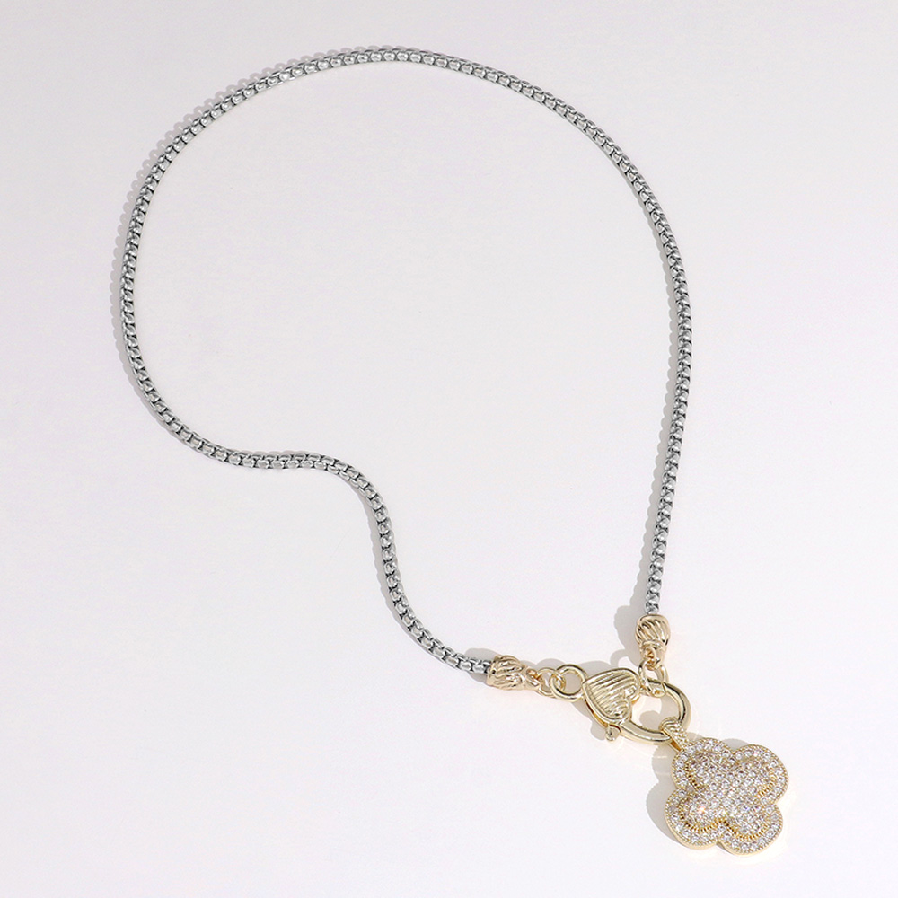 14K Gold Plated CZ Stone Paved Quatrefoil Pendant Necklace