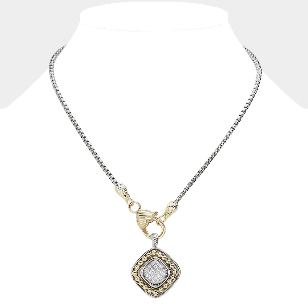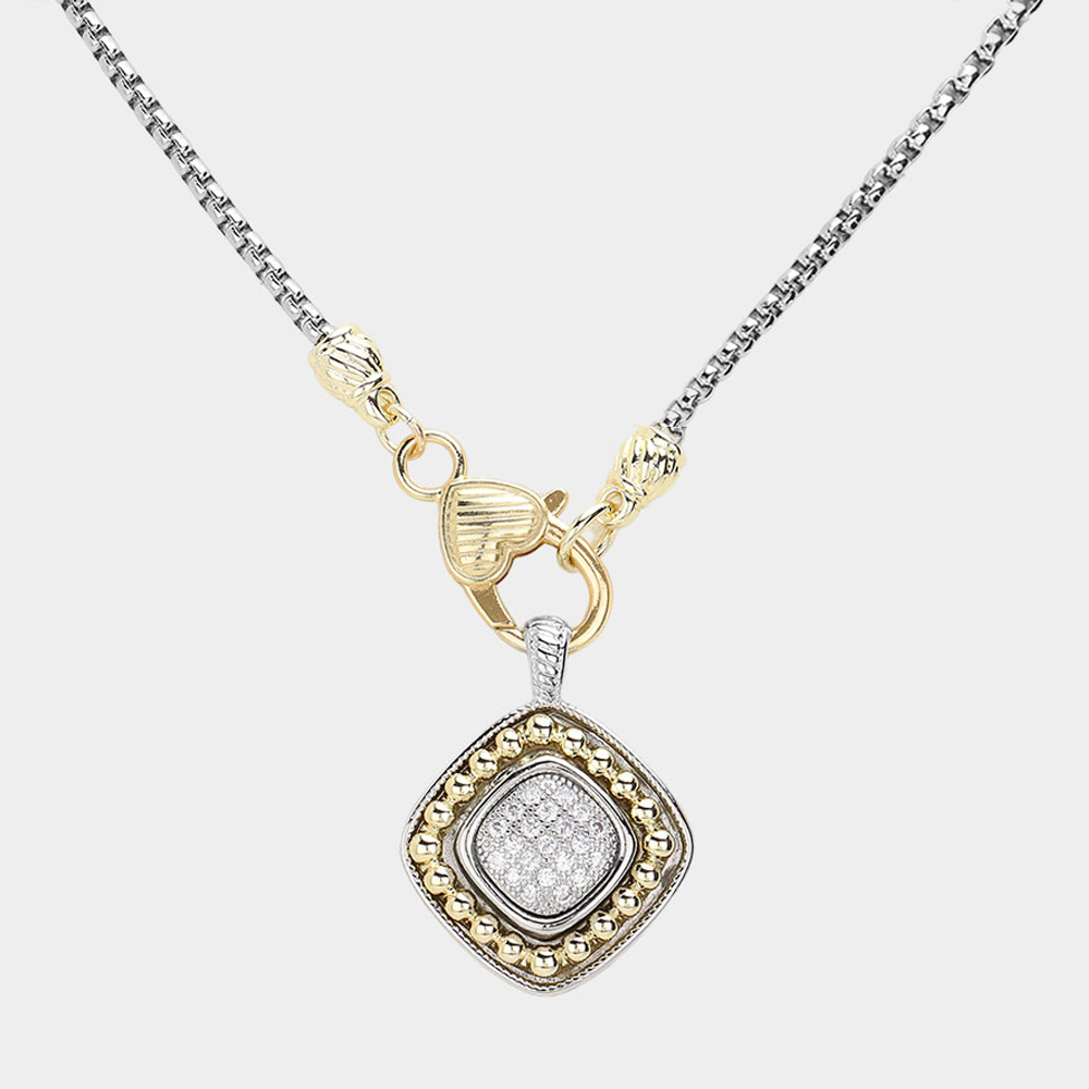 14K Gold Plated CZ Stone Paved Square Pendant Necklace