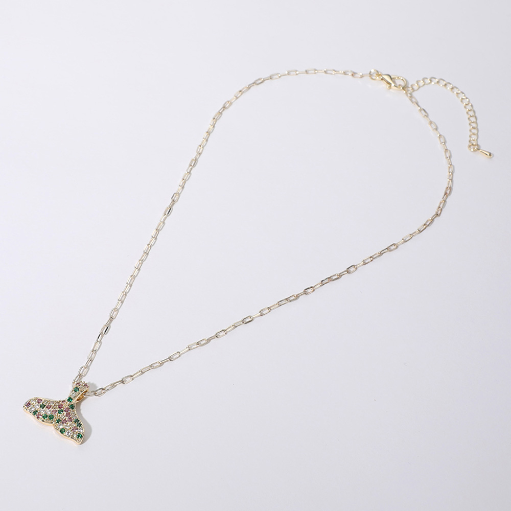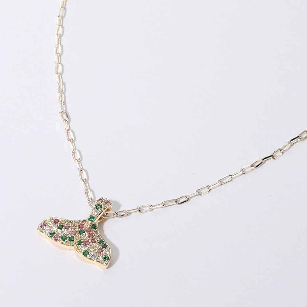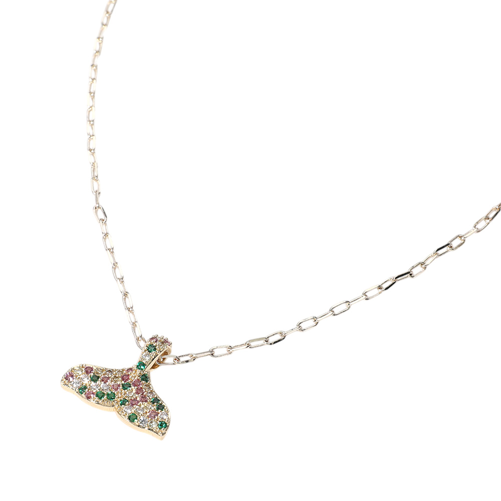 14K Gold Plated CZ Stone Paved Whale Tale Pendant Necklace