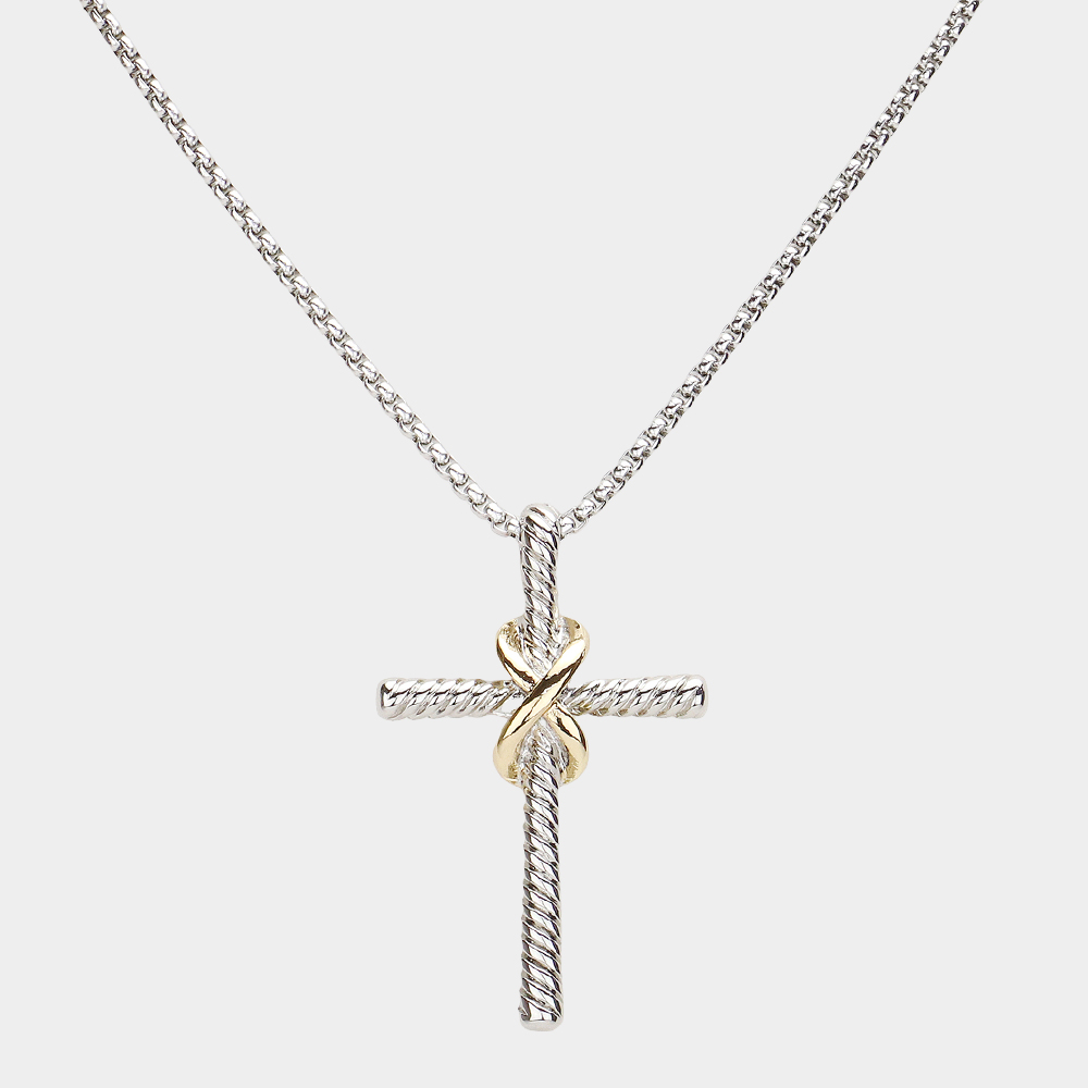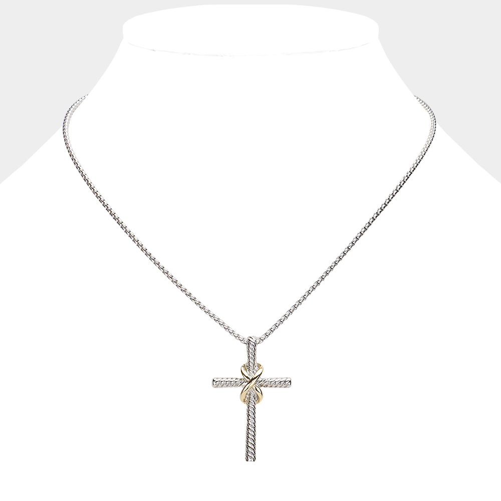 14K Gold Plated Two Tone Textured Cross Pendant Necklace