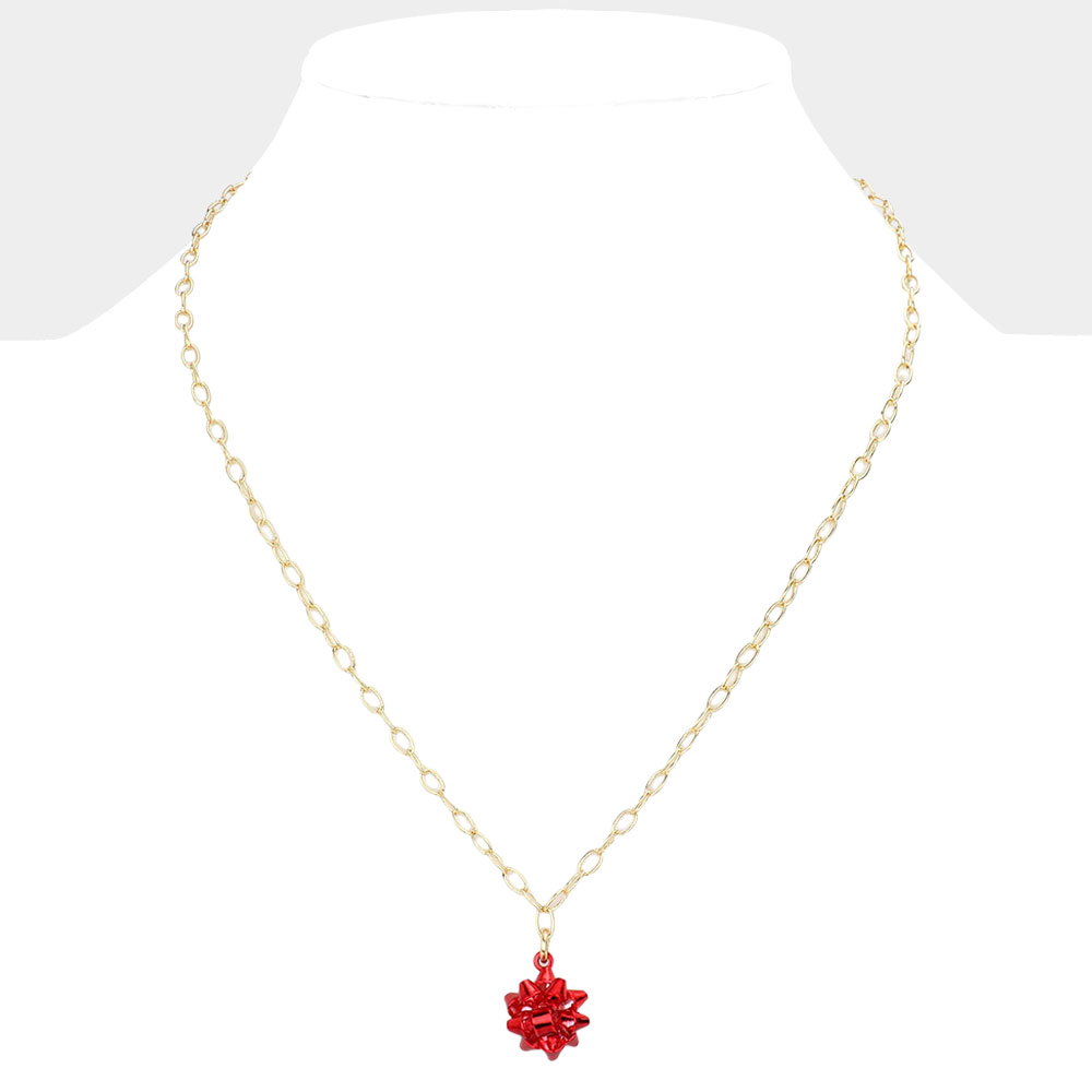18K Gold Dipped Christmas Gift Bow Pendant Necklace