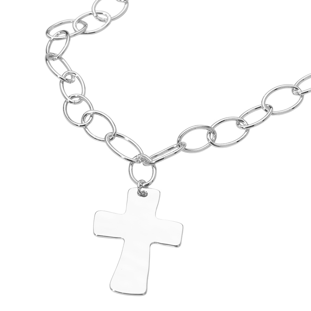 Details • Necklace Size : 18" + 3.25" L • Pendant Size : 1.25" X 2" • Make a bold statement with this chunky chain necklace featuring a sleek cross pendant. Perfect for layering or wearing solo, this faith-inspired accessory combines modern edge with timeless symbolism, offering a powerful look that’s versatile for casual outings, special events, or meaningful gifts. • Gold Dipped • Lead and Nickel Compliant • Made In Korea
