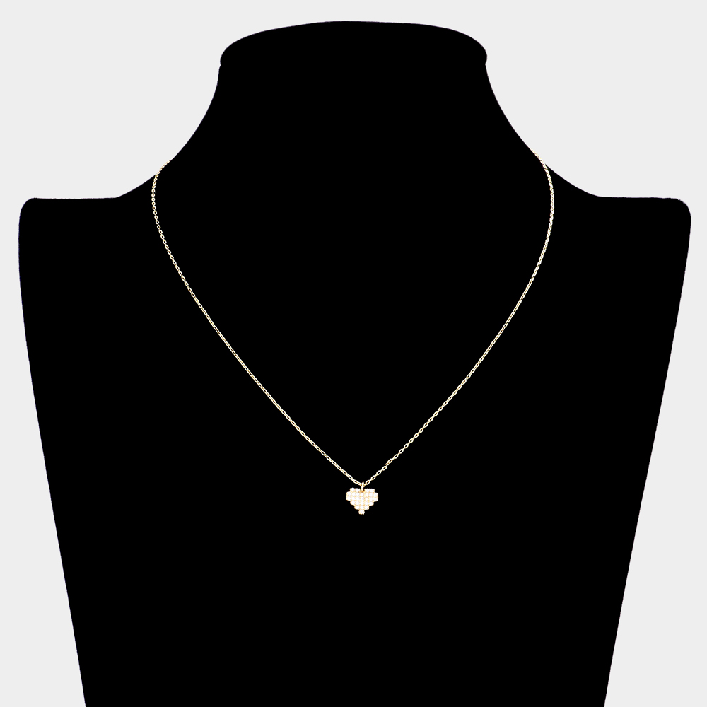 Details • Necklace Size : 15.5" + 3" L • Pendant Size : 0.3" X 0.3" • Chic heart pendant necklace adorned with sparkling cubic zirconia accents for timeless elegance. Designed with a delicate chain and modern style, this necklace is versatile for layering or wearing solo, making it a meaningful gift or an everyday accessory that elevates any outfit effortlessly. • Lead and Nickel Compliant • Gold Dipped • Brass • CZ Cubic Zirconia