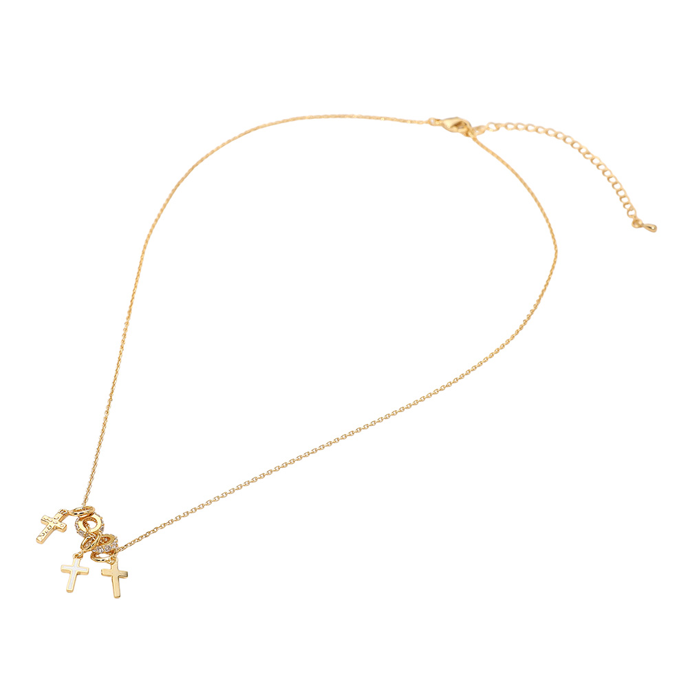 Details • Necklace Size : 16" + 3" L • Decor Size : 0.75" L • Stylish layered necklace featuring delicate chains adorned with small cross pendants for a modern, meaningful touch. Perfect for daily wear or layering with other pieces, adding elegance and symbolism to any outfit with a minimalist and refined design that never goes out of style. • Gold Dipped • Lead and Nickel Compliant