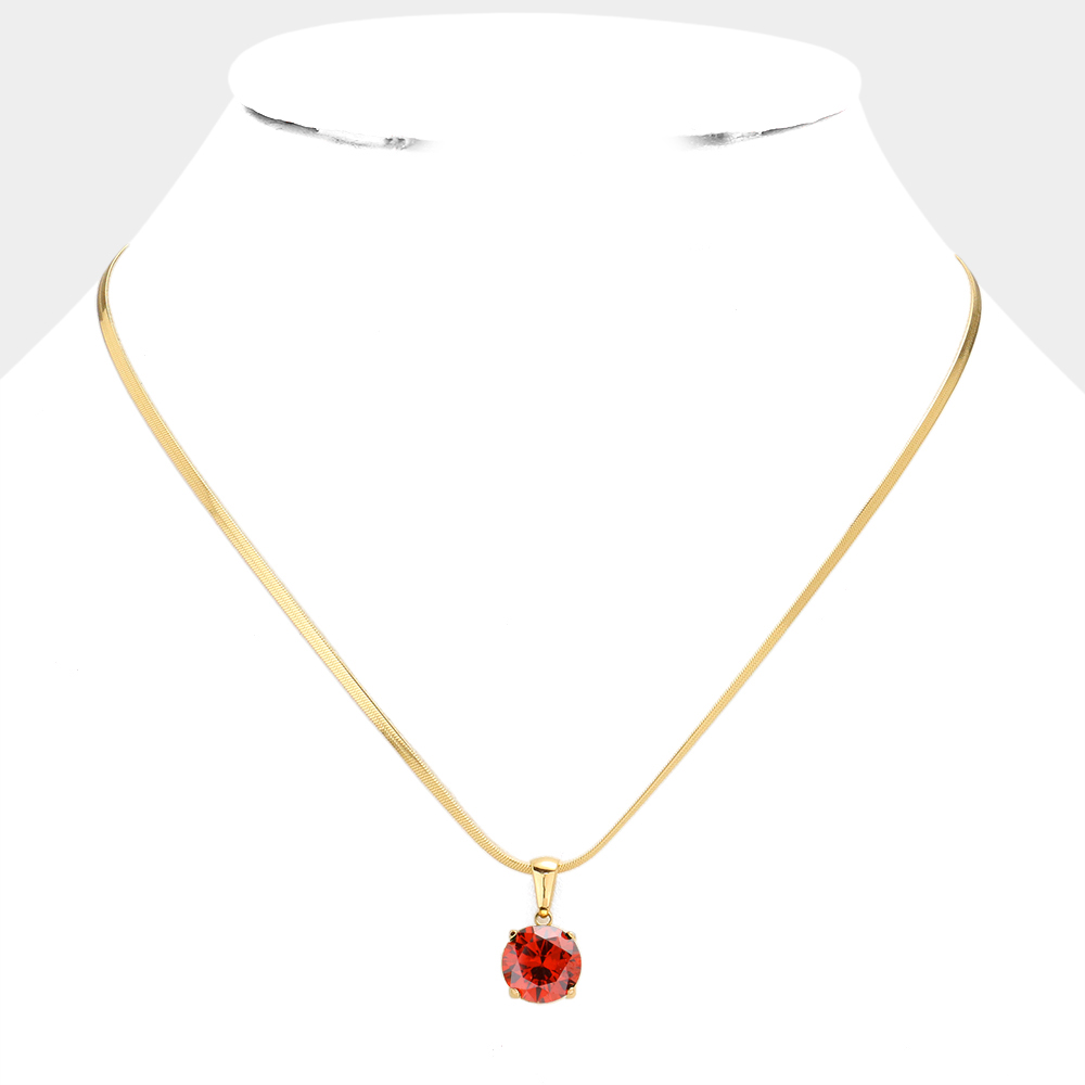 Stainless Steel CZ Round Pendant Necklace
