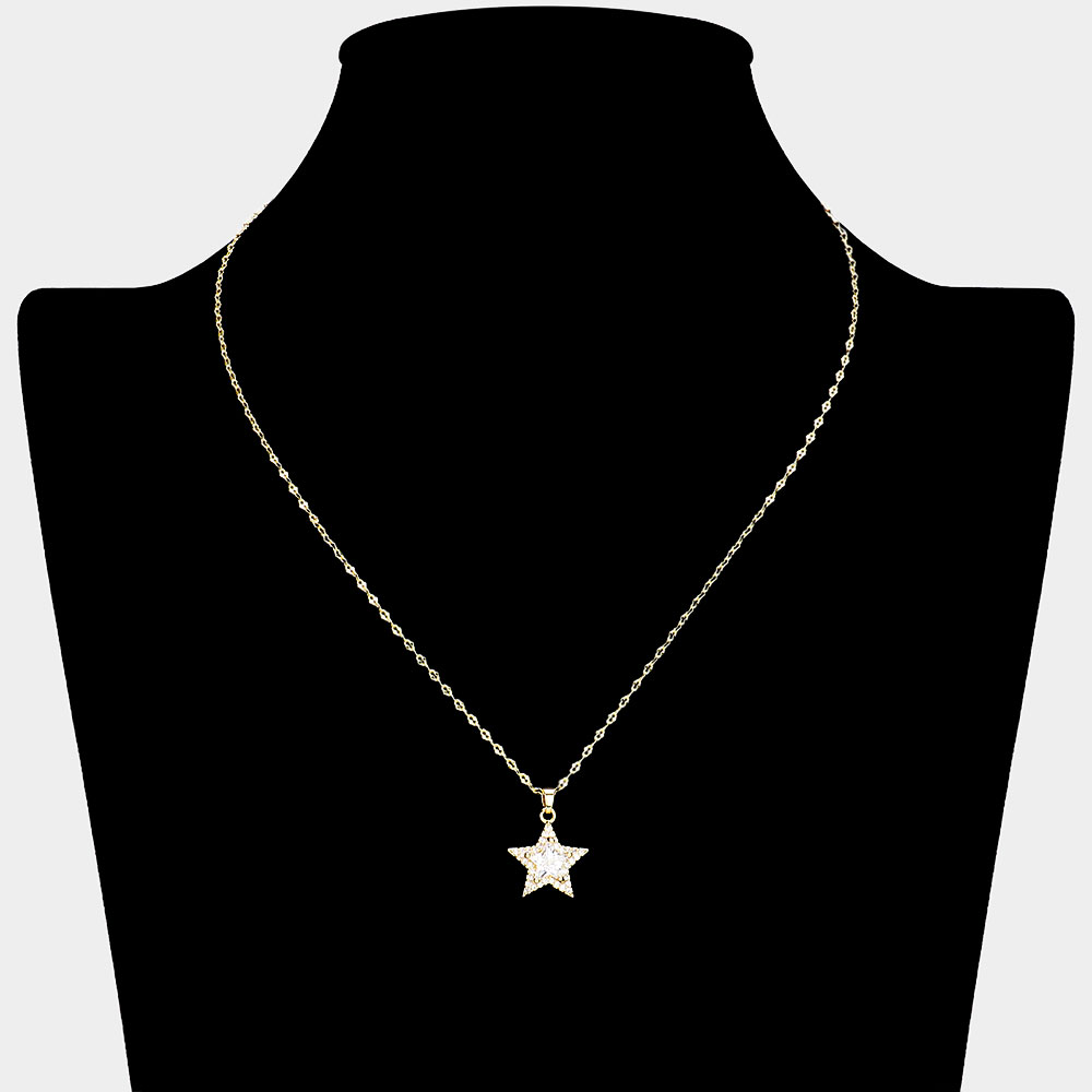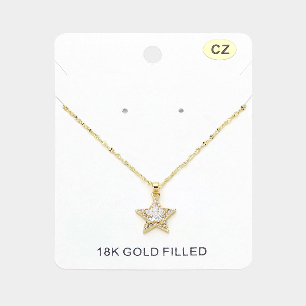 18K Gold Filled CZ Stone Paved Star Pendant Necklace