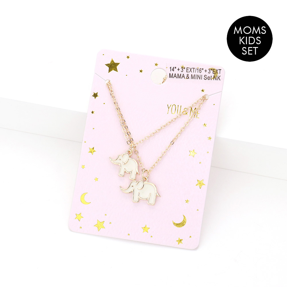 2PCS - Enamel Elephant Pendant Moms and Kids Set Necklaces