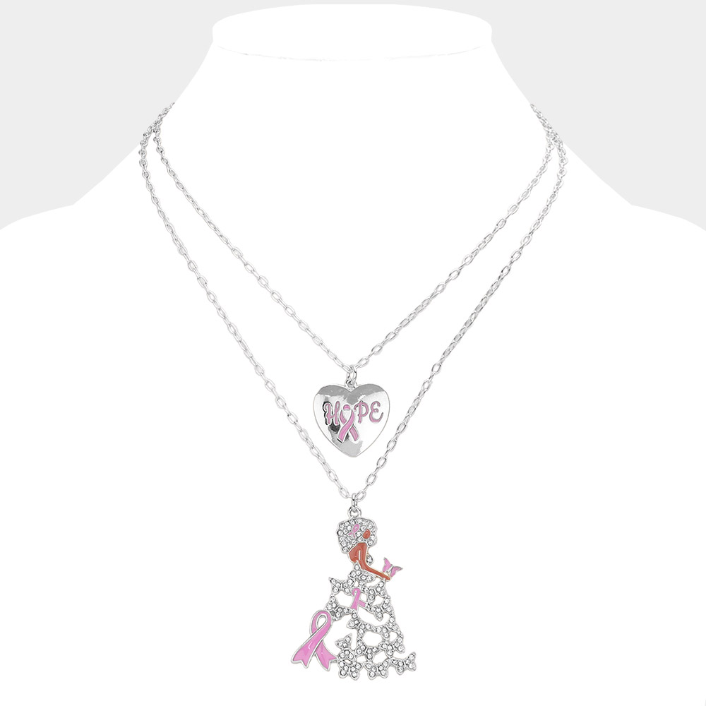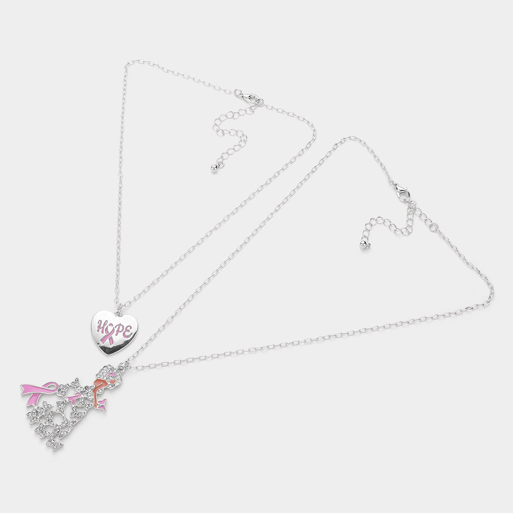 2PCS - Hope Message Heart Pink Ribbon Afrowoman Pendant Necklaces