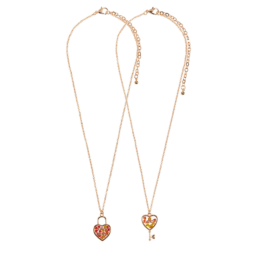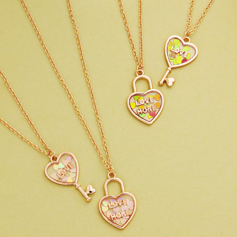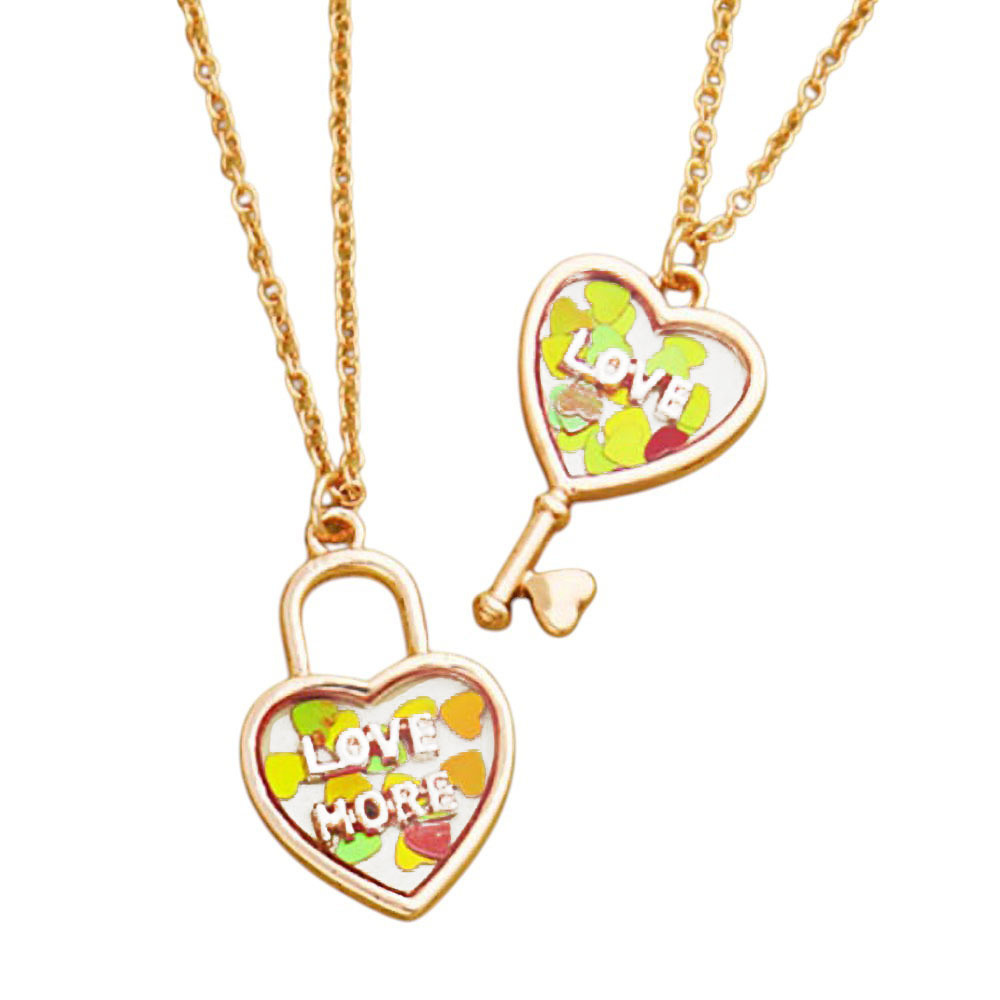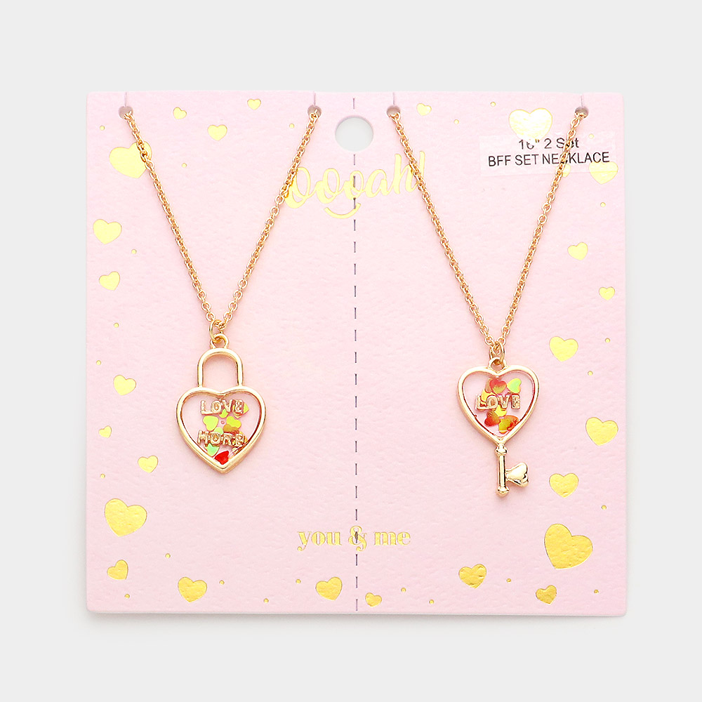2PCS - Love & Love More BFF Heart Lock Key Necklace Set