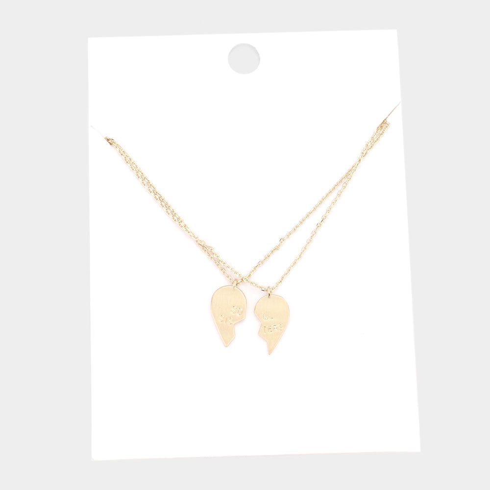 2PCS - SOUL SISTERS Brass Metal Broken Heart Pendant Necklaces