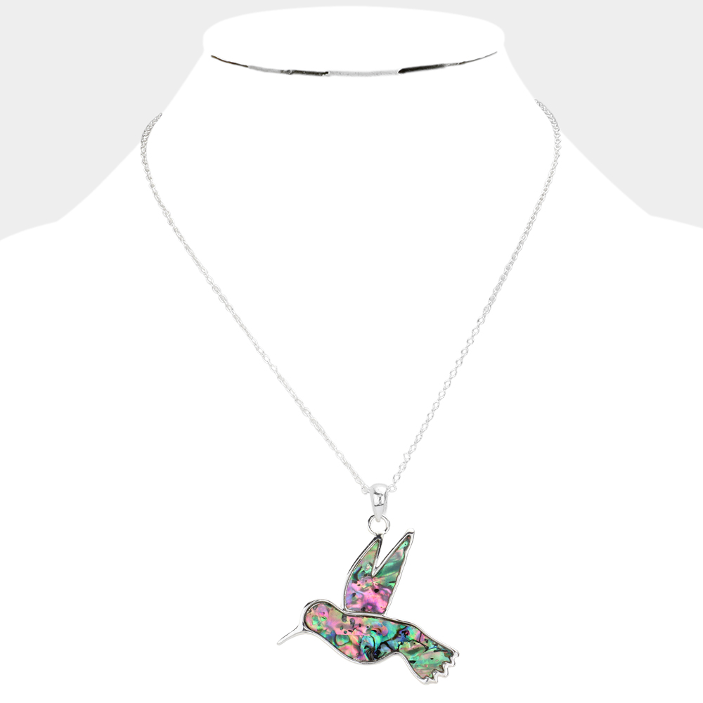 Flamingo Accented Abalone Sea Glass Pendant Necklace