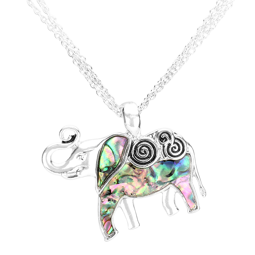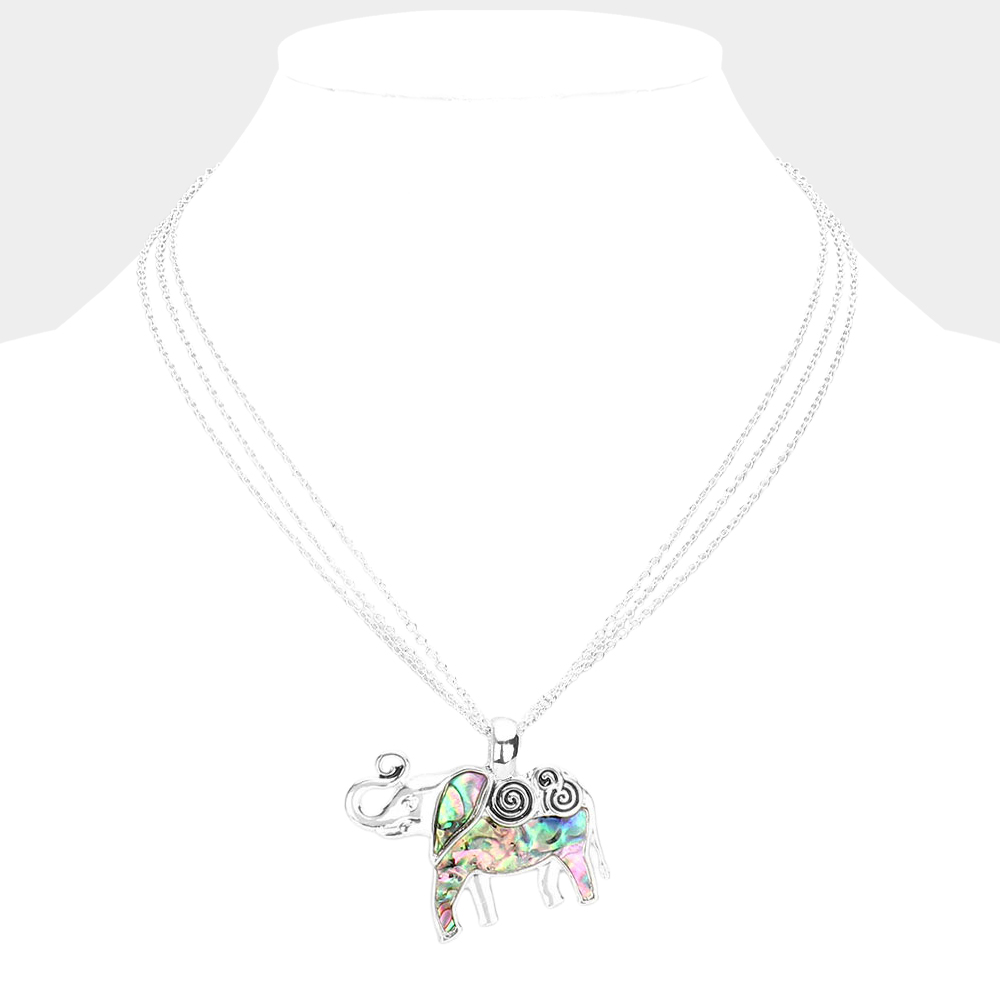 Abalone Metal Elephant Pendant Triple Chain Layered Necklace