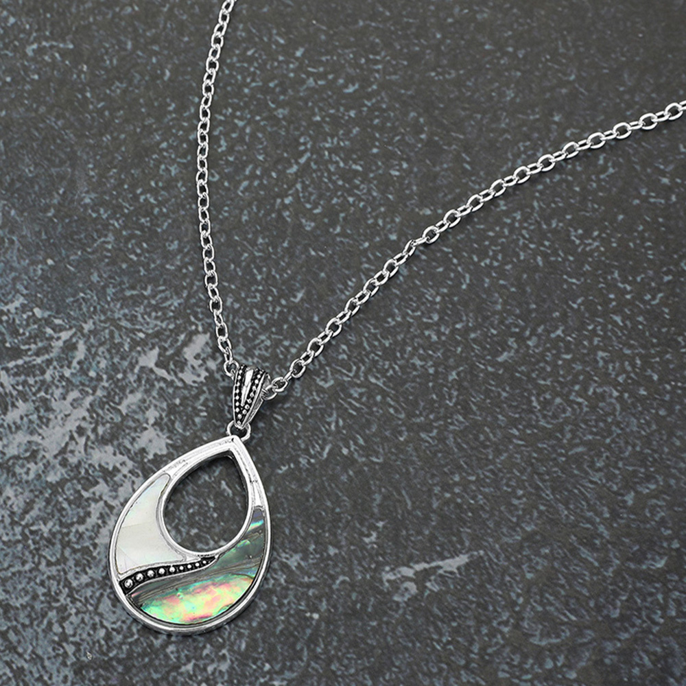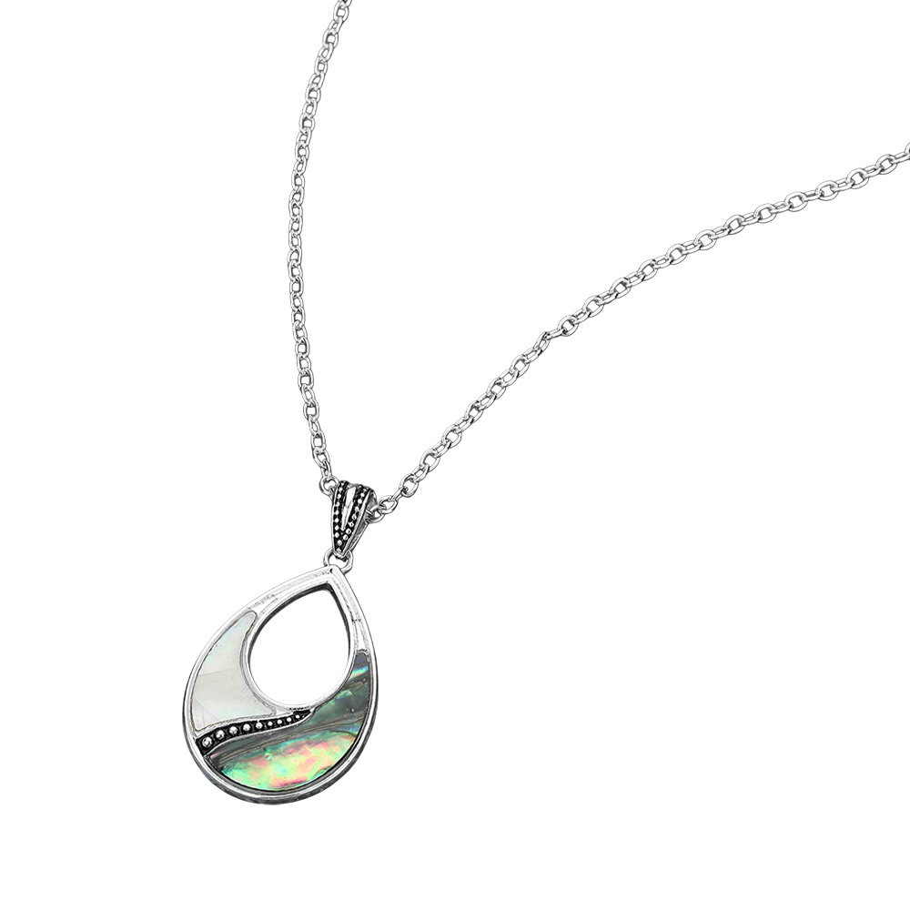 Abalone Mother of Pearl Open Teardrop Pendant Necklace