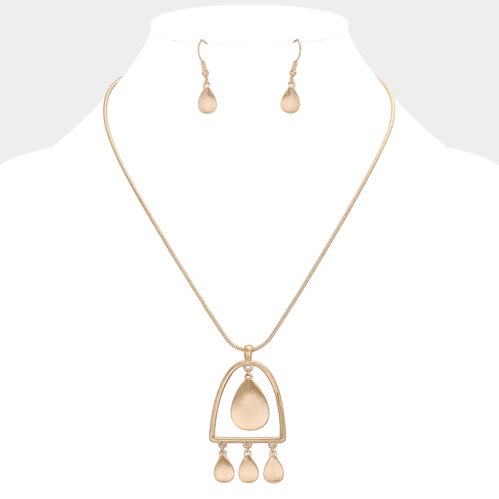 Abstract Metal Teardrop Dangle Pendant Necklace