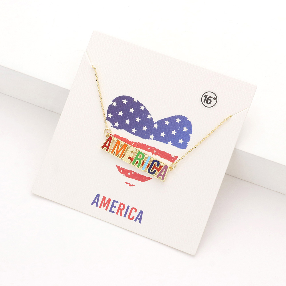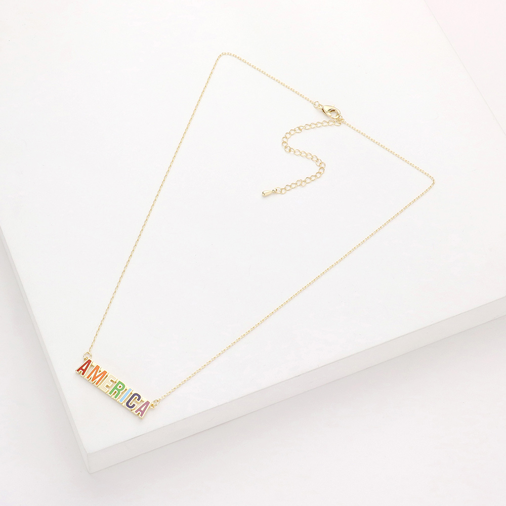 Enamel American USA Flag Metal Cross Bow Charm Station Paperclip Chain Necklace