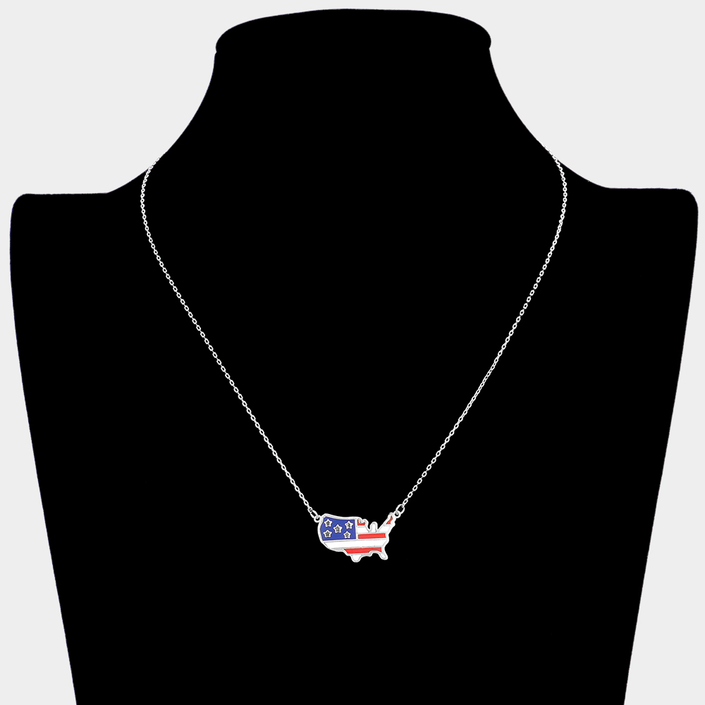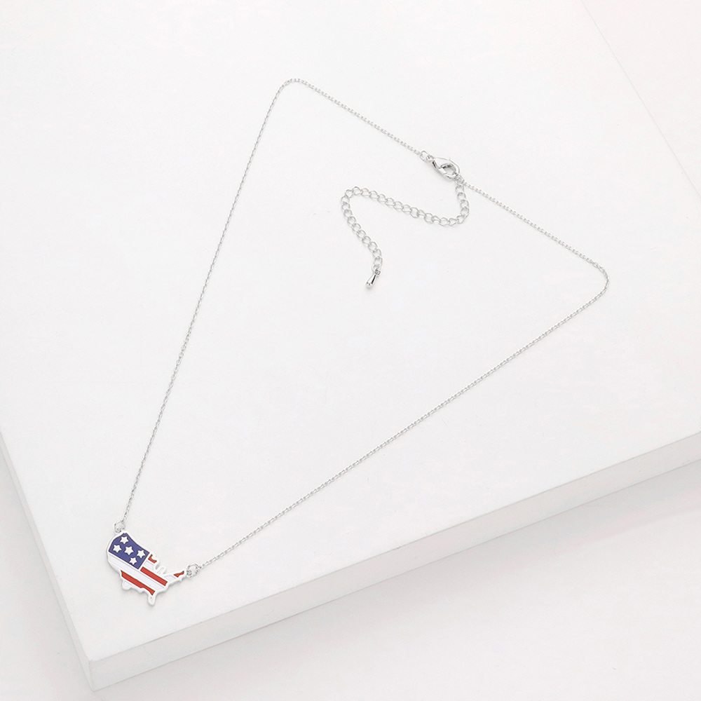 Enamel American USA Flag Western Boot Hat Bow Star Heart Charm Beaded Necklace