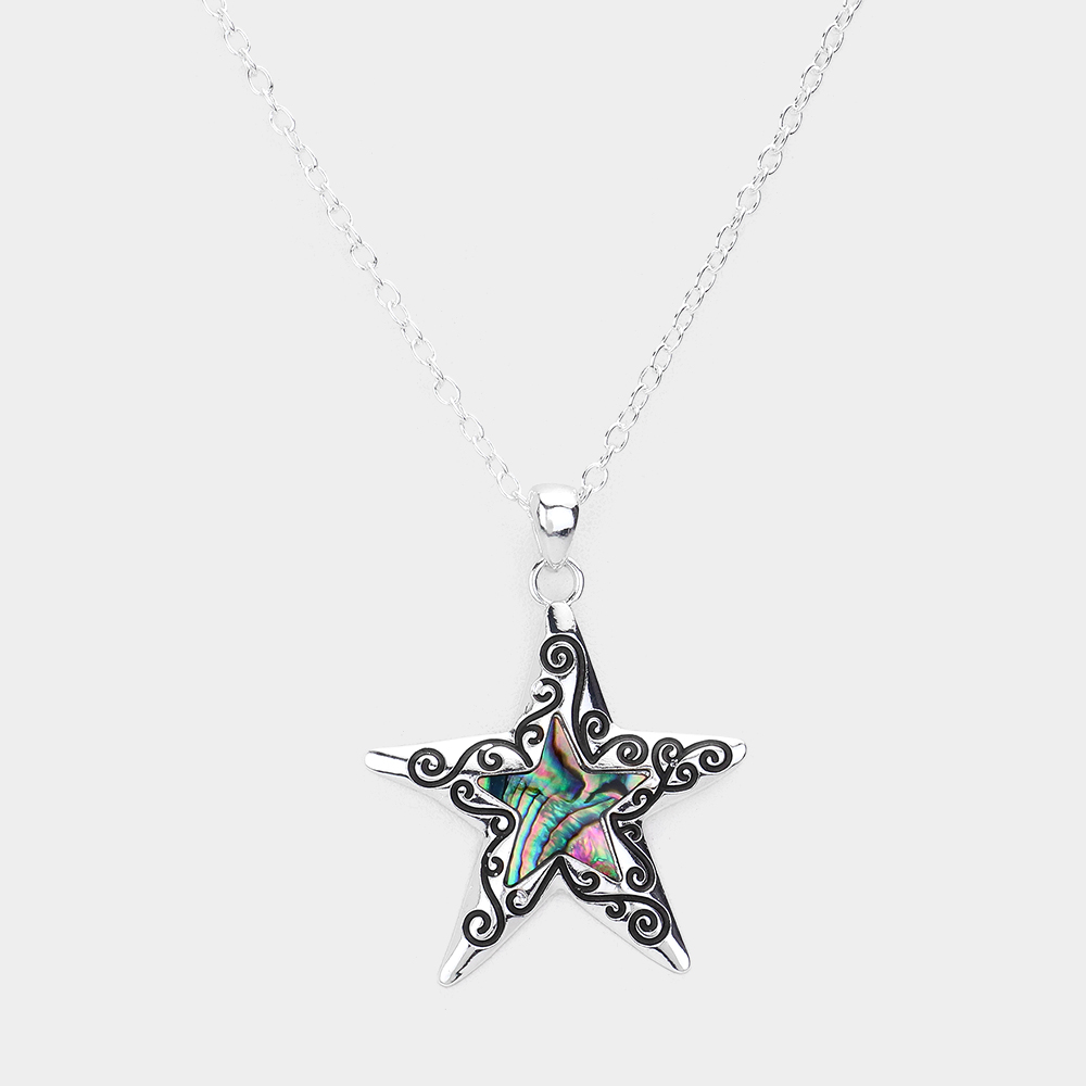 Abalone Embossed Metal Dragonfly Pendant Necklace