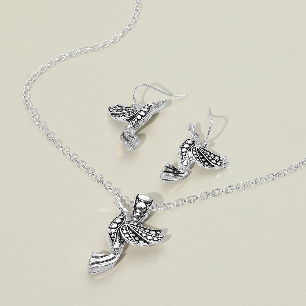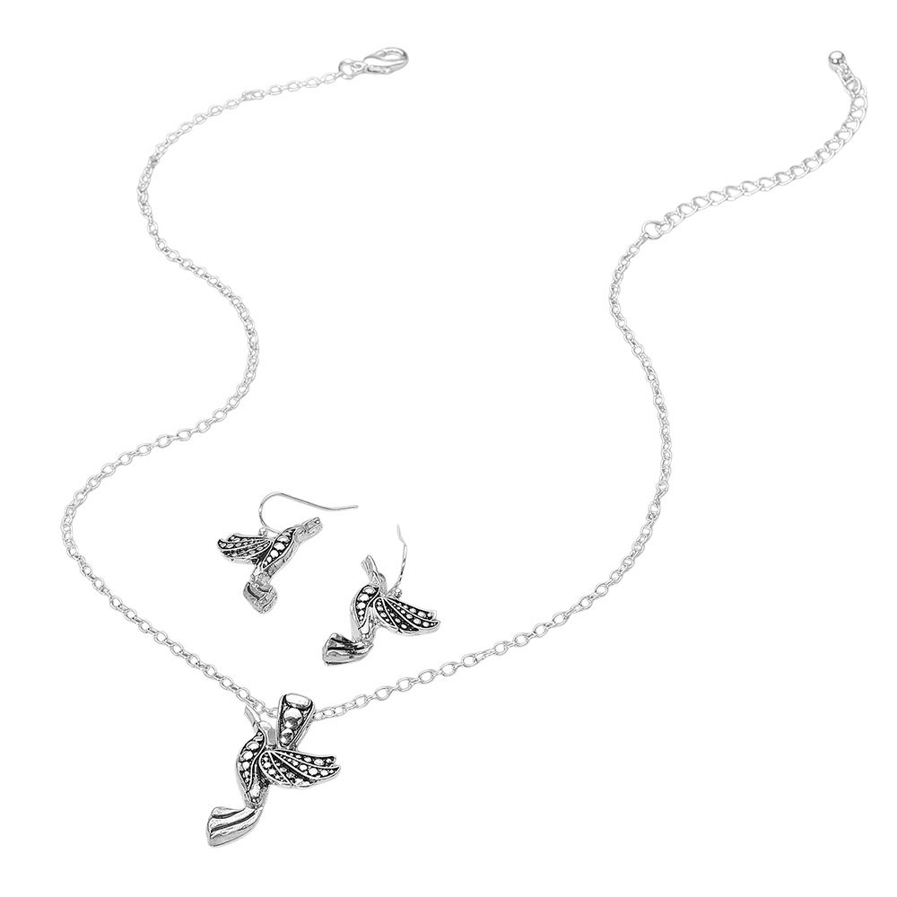 Details • Necklace Size : 18" + 3" L • Pendant Size : 0.9" X 1.4" • Earrings Size : 1.25" L • Elegant bird pendant necklace with matching earrings, featuring intricate detailing that captures the beauty of nature. A perfect gift for bird lovers and a stylish accessory for everyday or special occasions. • Lead and Nickel Compliant