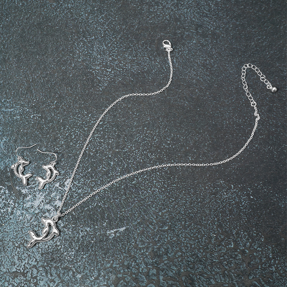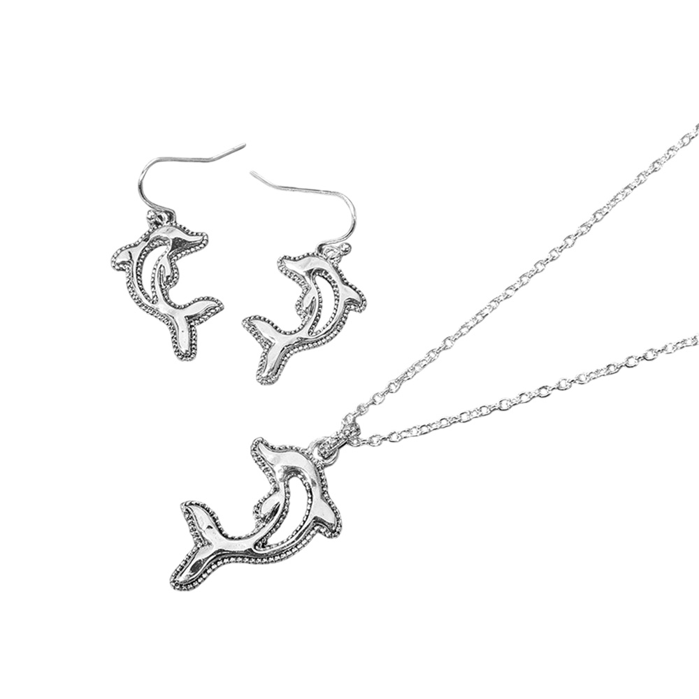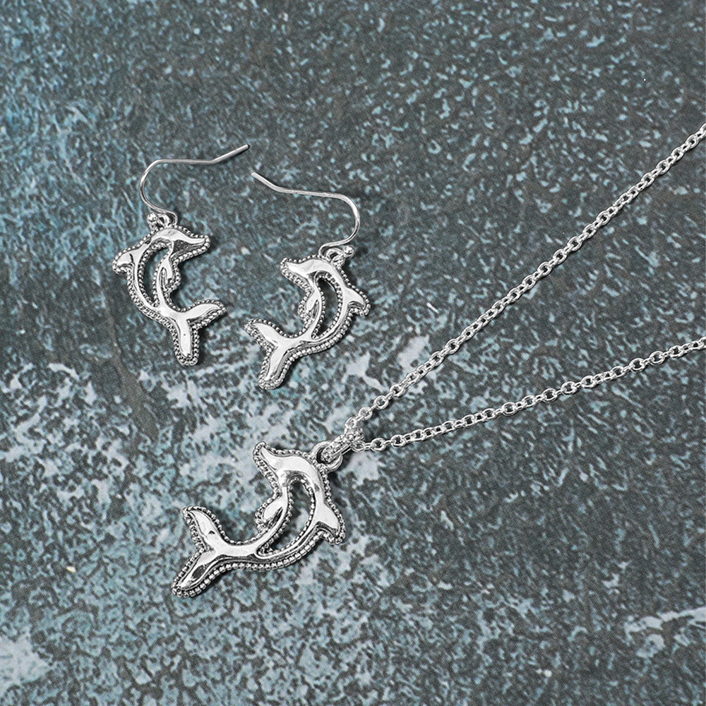 Antique Metal Dolphin Pendant Necklace
